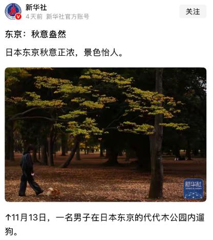正当全国人民都在批斗日本首相高市早苗之时,新华社突然发了一组日本东京代代木公园的图片,这是什么意思?实在令人难以费解! 照片里阳光和煦,满地金黄的银杏叶,看起来一片祥和,但很快就有人发现,在一块不起眼的电子屏幕上,竟然闪过了电影《终结者》里核弹爆炸的画面。 这个细节让整件事瞬间变得不简单,这已经不是暗示,而是一记响亮的警钟,直接敲响了高市早苗上台后的一系列危险动作。 自从高市早苗掌权,日本的军事政策就开始一路狂奔,她大笔一挥,就批准了高达43万亿日元的巨额防卫预算,还叫嚣着要让这个数字冲向GDP的3.5%,远超传统限制。 那钱花在哪?其中相当一部分花在美国“战斧”巡航导弹采购上,这种射程超过1600公里的武器,一旦部署,意味着日本将拥有主动攻击东亚任何目标的能力,彻底撕碎了“专守防卫”的伪装。 更过分的是,她还敢打“无核三原则”的主意,公然讨论要修改“不制造、不拥有、不运进核武器”的国策,积极寻求和美国搞“核共享”,要知道,代代木公园所在的东京离福岛核电站不远,她一边无视核污染水排海的危害,一边又要把国家往核武器的火坑里推。 在国内磨刀霍霍的同时,高市早苗在国际上也把日本往战车上绑,她极力推动日本在“美日印澳四方机制”(QUAD)中扮演更激进的角色。 今年以来,日本参与的联合军演频率比去年暴增近四成,演习的后勤补给点,有不少就设在代代木公园附近的美军基地里,这片公园,过去是日本对外侵略的出发点,如今成了新军事集团搞围堵的“后勤站”。高市早苗正用实际行动,把日本推向大国冲突的最前沿。 而就在这片代代木公园的草坪上,如今公然摆着自卫队的招兵摊位,穿着制服的人员向年轻人兜售着印满武器的宣传册,可谁还记得,几十年前,这里曾是日本反战运动的圣地。数万民众曾在此集会,高喊反战口号。 而现在,高市早苗政府却通过修改法律、约谈组织者等手段,强行压制和平的声音,把反战热土变成了推行军国主义的秀场。 二战时,这里是旧日军近卫师团的练兵场,是侵略战争的策源地,战败后,又成了美军的“华盛顿高地”,是外国驻军的象征。 直到1967年,为了装点门面,才改成公园,公园地下至今还封存着二战时期的工事,墙上的弹痕无声地诉说着战争的残酷。 所以,新华社这组照片,绝不是简单的风景照,它用一个巧妙的镜头,将公园的血腥历史、被压制的反战声音、高市早苗政府的军事野心和核阴影,全部串联了起来。 它无声地揭示了一个事实:高市早苗的右翼行径,正在绑架整个日本,试图将亚洲再次拖入危险的境地。