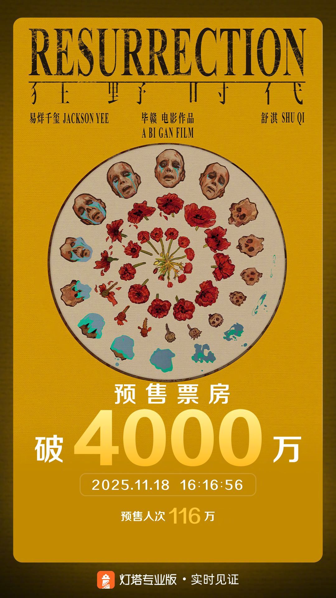 据灯塔专业版实时数据,截至11月18日16时16分,影片《狂野时代》预售总票房突破4000万。