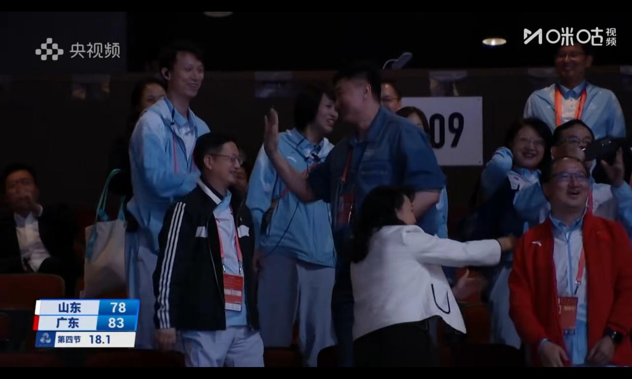 杜锋依然在看台观战,何文炜抢断奠定胜局后,大家才和他击掌庆祝 上半场看不到杜锋,下半场在李群指导陈潇毅后,杜锋在末节就两次出现,也就是何文炜抢断,广东队基本夺冠后,直播才开始给杜锋镜头,甚至很多人挨个和他击掌,当然开始是杜锋先起来,招人分享快乐。 李群在场的比赛,杜锋还是很低调,甚至都没有去休息室和场地里面,这没什么奇怪,他干什么,自然要契合自己的身份,履行的自然是职责。