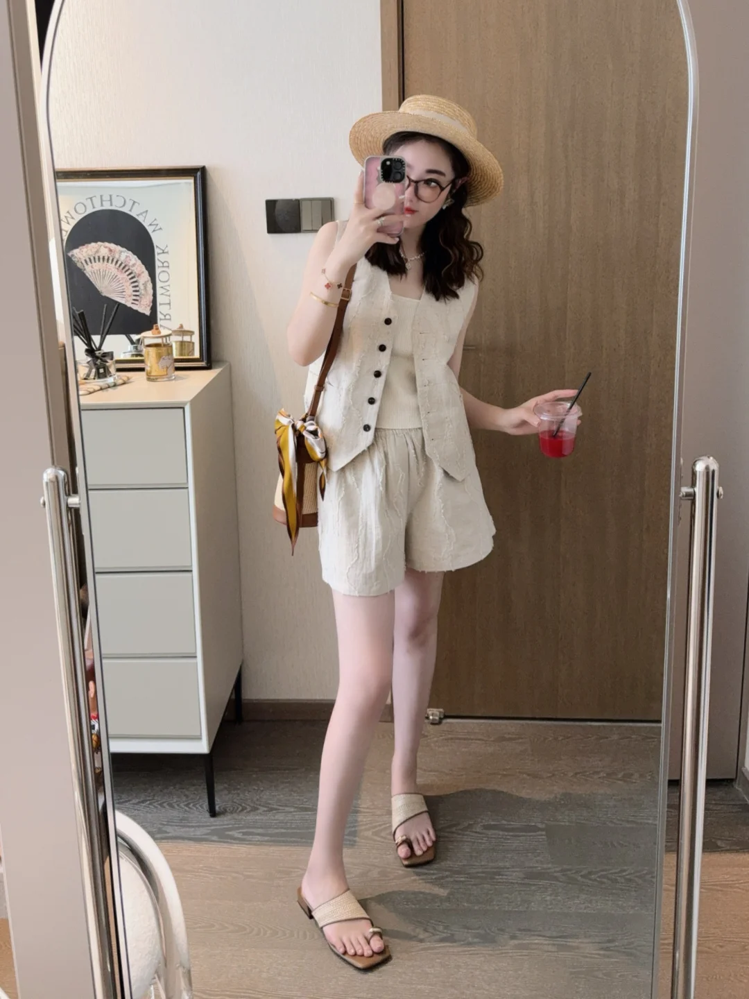 亚麻脑袋上线👀夏天不费力的松弛感轻松拿捏~~ 今年亚麻风刮的太大了啊!套装太适合懒人了叭~🎈