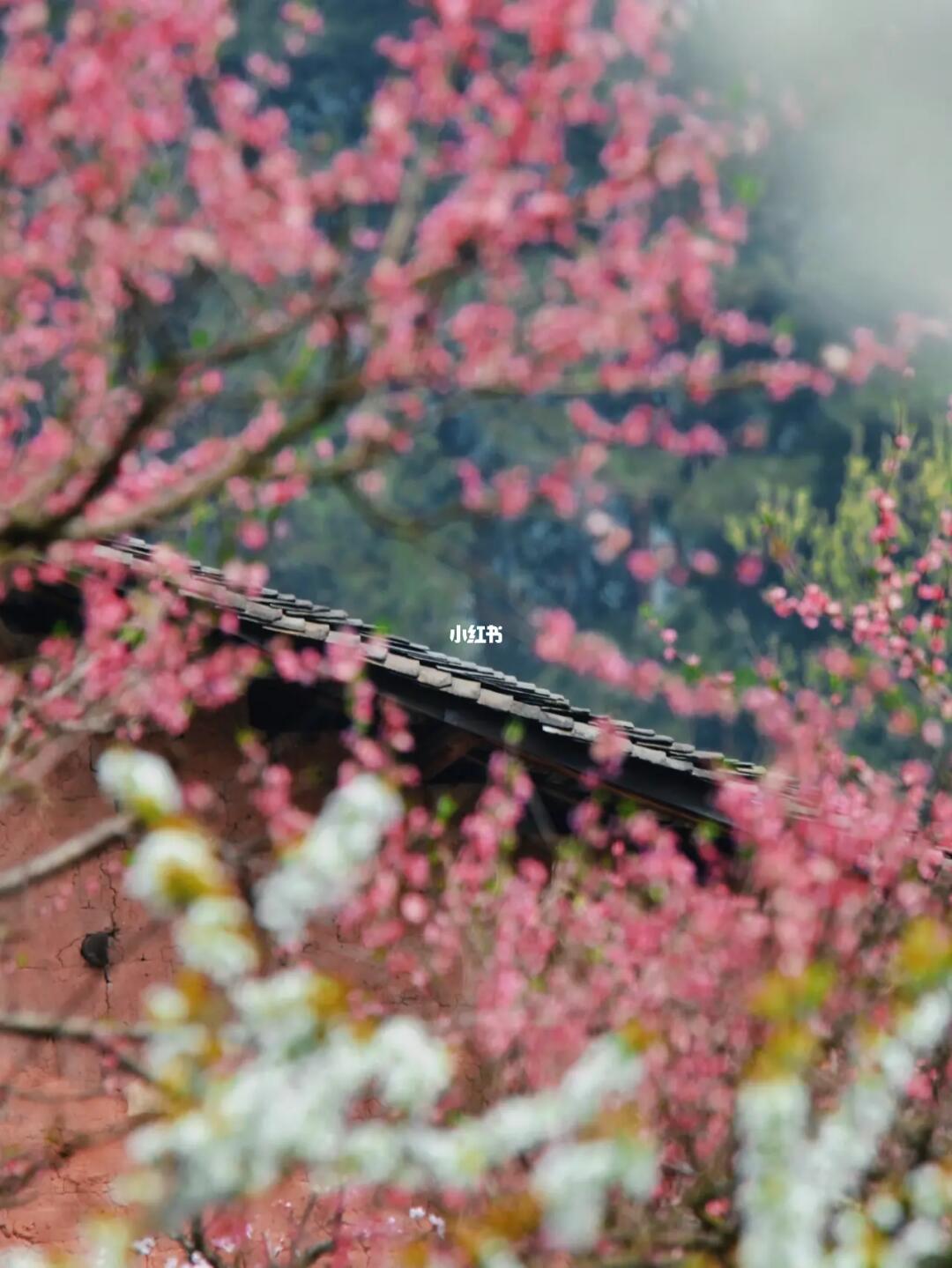 🎈村中的红房和梅花/桃花/梨花的组合照