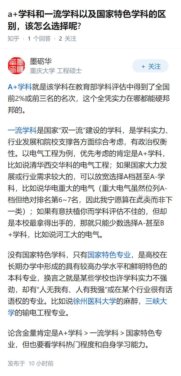 a+学科和一流学科以及国家特色学科的区别,该怎么选择呢?