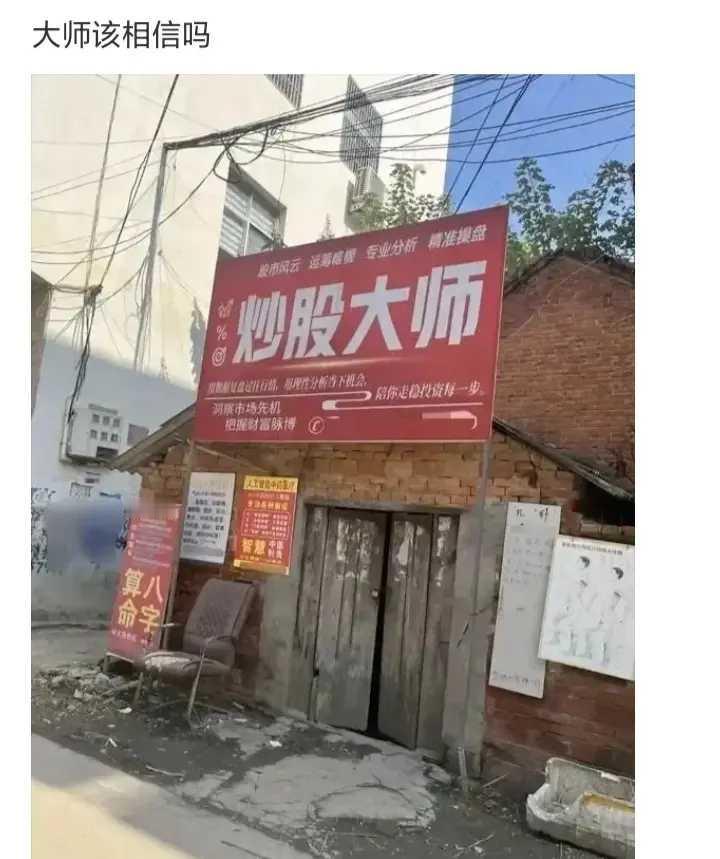这段时间手气不顺,炒股连连亏损。 股友小刘说,你运气不好,买已经大涨过的股票,不亏你亏谁? 可是,不买大涨的股票那该买什么的呢?买那些一直卧着不动的?我摇了摇头。 昨日去买菜,瞧见屋旁小巷子里,有一个挂着炒股大师大招牌。有心去求教,可是小木门锁着,没有人。 买菜回来,心里一直闷闷不乐,仿佛错过了能为指点迷津的大师。既然敢挂大招牌,当有两把刷子。 等会儿吃过早餐,再去找这位大师,求指点一二。