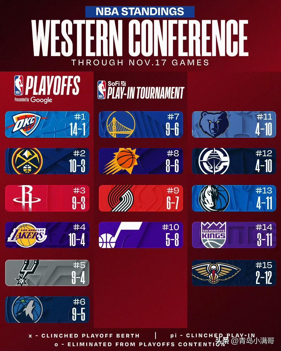 东西部最新排名!!!活塞10连胜,猛龙升至第三,掘金破主场不败金身! 北京时间11月18日,NBA一天的比赛又结束了,共有8场比赛,雷霆、活塞继续领跑东西部榜单,一起来看下最终排名吧。 东部方面: 活塞10连胜排名第一,从他们身上看到了去年骑士的影子。 猛龙和老鹰最近很猛,猛龙战胜黄蜂升至第三,老鹰继续第四,而尼克斯不敌热火后降至第五,热火则升至第七,公牛赢球第八,雄鹿输球第九,魔术第十。 西部方面: 雷霆继续连胜,收获第14场胜利,掘金主场不敌公牛破了本赛季主场不败金身,继续排名第二,三到六名不变,分别是火箭、湖人、马刺、森林狼,勇士第七,太阳降至第八。 西部相对稳定,和上一天比变化不大,东部球队本赛季的变化是没有想到的,看来凯尔特人和步行者掉队后新的看点也随着出来了。 NBA实力榜 西部nba排名 多伦多猛龙 nba最终排名