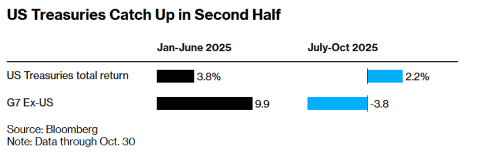 随后在4月,特朗普推出的激进关税引发了贸易战将导致外国投资者们短暂回避所有美国资产的浓厚担忧情绪。