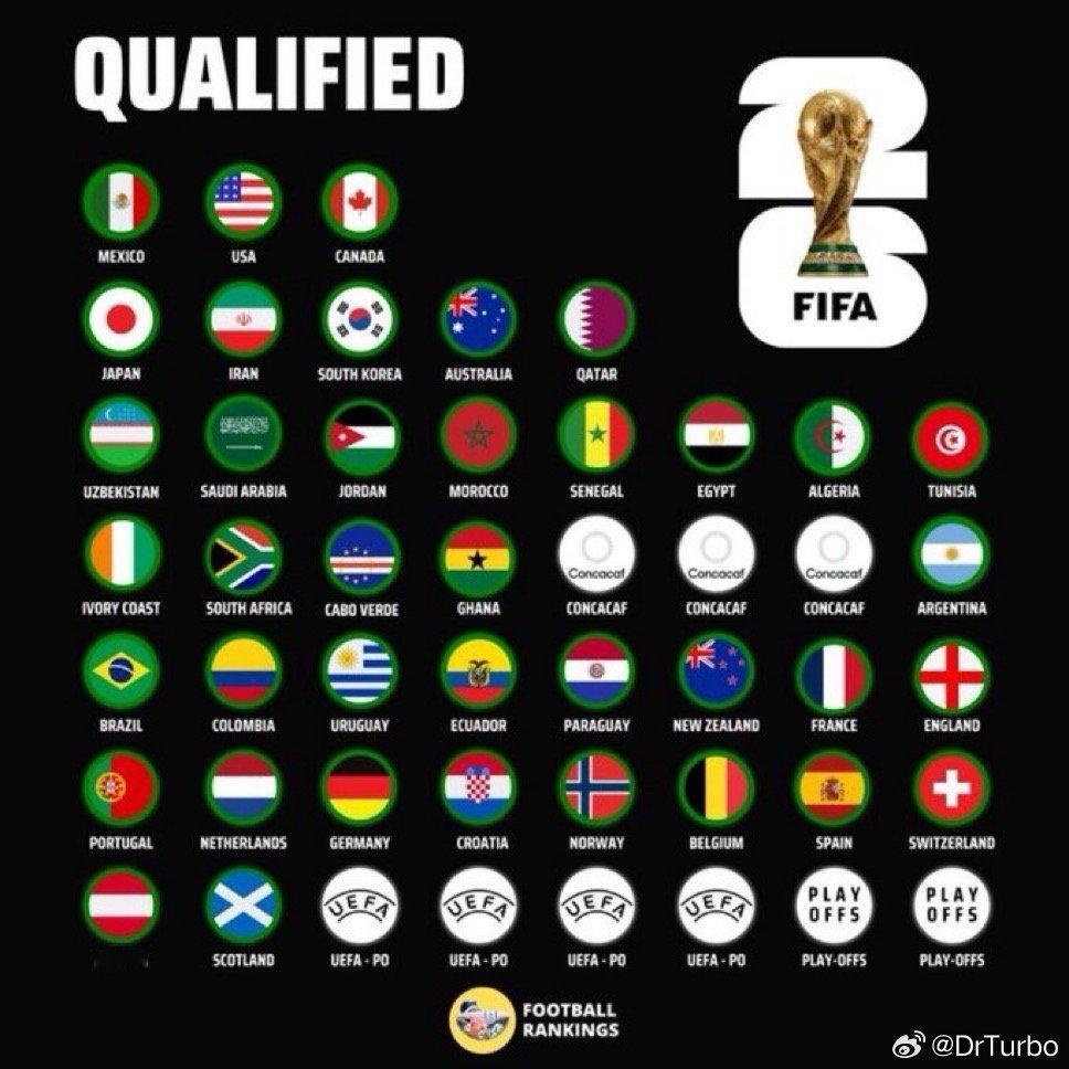 目前为止 已经有39支球队确定了世界杯的参赛资格 🔥