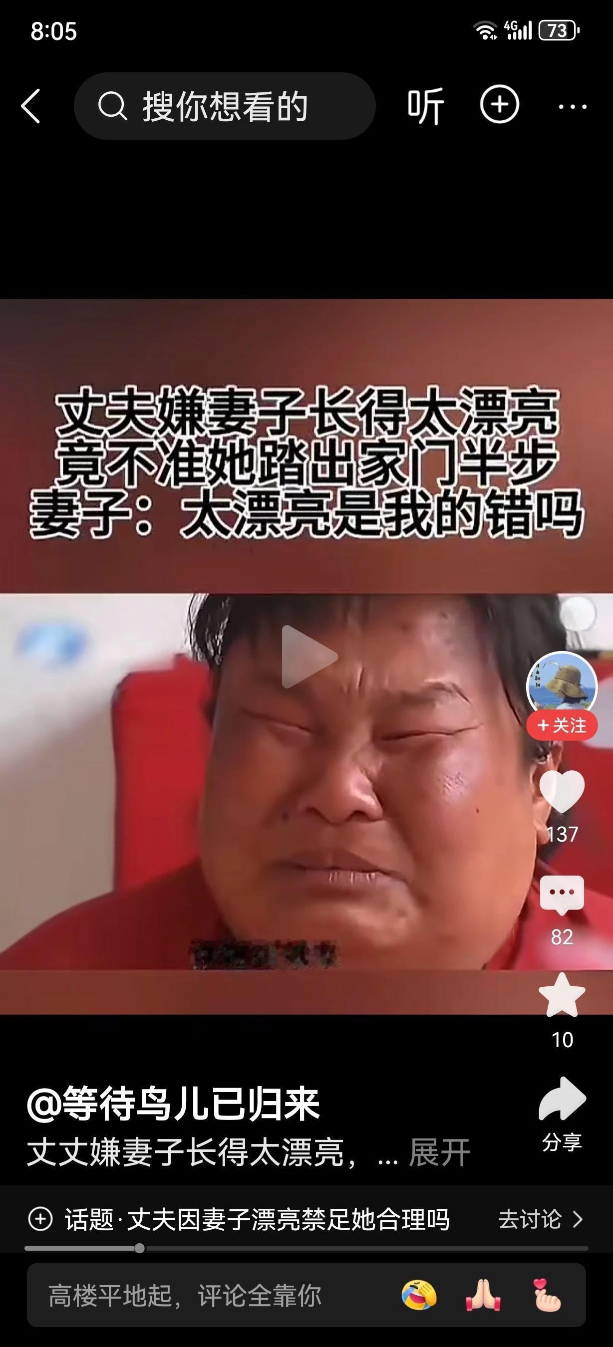 丈夫嫌妻子长的太漂亮,竟不允许她踏出家门半步。 这要不是自媒体看我爱看热闹,编纂出来骗我的吧?就这副模样,给我们村五保户人家都不敢要,怕抢了人家的名额。分了人家的保障。 说到这,我想起来了,我们村五保户,我爸说,人家把大衣柜都卖了,就是领一分钱,花一分钱,也不攒,也不贷。月月光。啥也不干。从年轻就没说媳妇。一个人,一辈子。也不用帮谁还房贷,也没人管他叫爸爸。习惯了,也不在意。也不是有病的。 再过二十年,现今的光棍老了,可没这个待遇,因为人多了。啥都是缘分,今天的这波五保户是倒退四十年,父母不努力,儿子没娶上媳妇的那批,老了成了香饽饽。 还退回去说,这个男人,没见过世面,还没见过电视上那么多的美女,咋就情人眼里出西施了呢?你不看把你家西施愁成啥样儿了?太漂亮,难道真的是她的错吗?我快呼吸不畅了,笑岔气儿了!