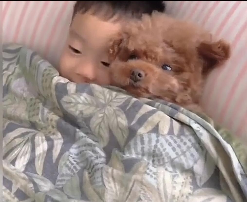 狗和人同床共枕你能接受吗? 网上一个3岁小孩和家里的小泰迪一起睡觉,玩耍的视频
