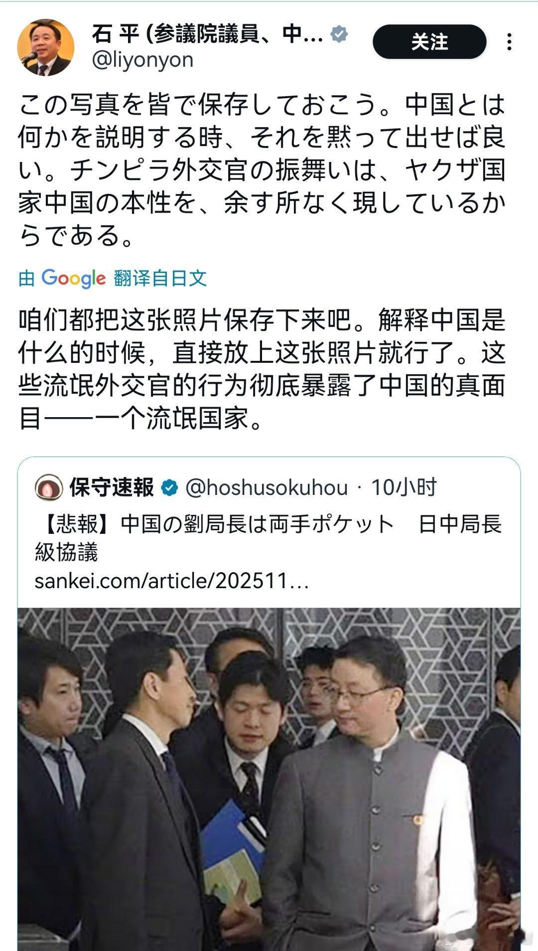 看看真正的汉奸石平太郎怎么看中日外交官交锋,凡是像它一样破防的,基本可以判定为汉奸同类。