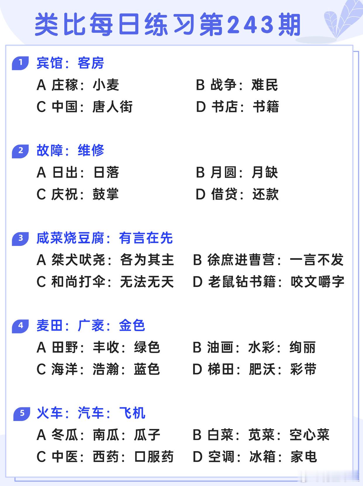图推类比每日练习第242期图推难度:☆☆类比难度:☆☆