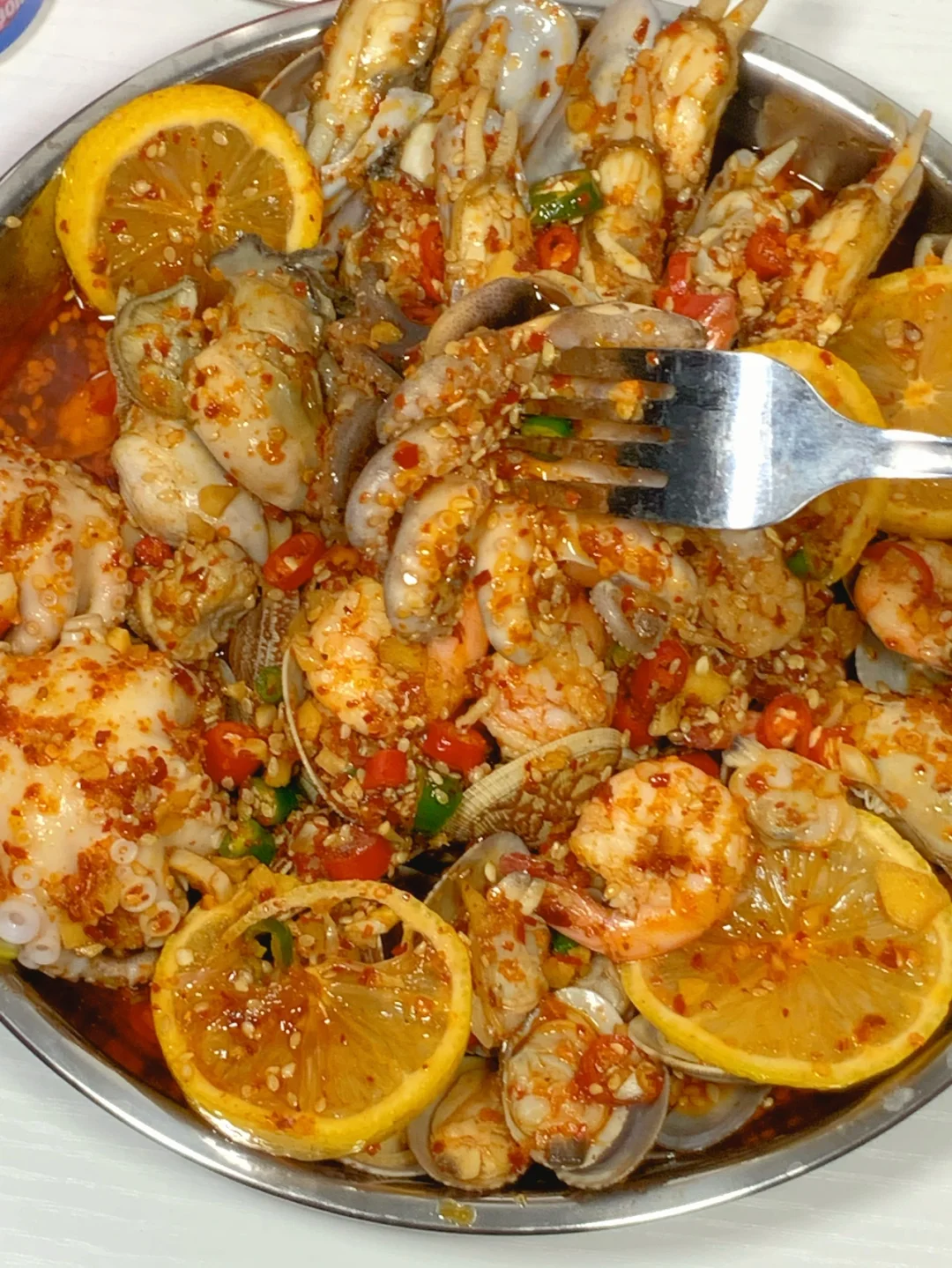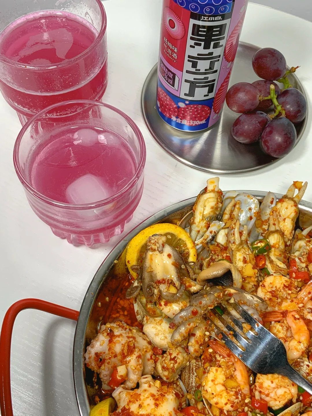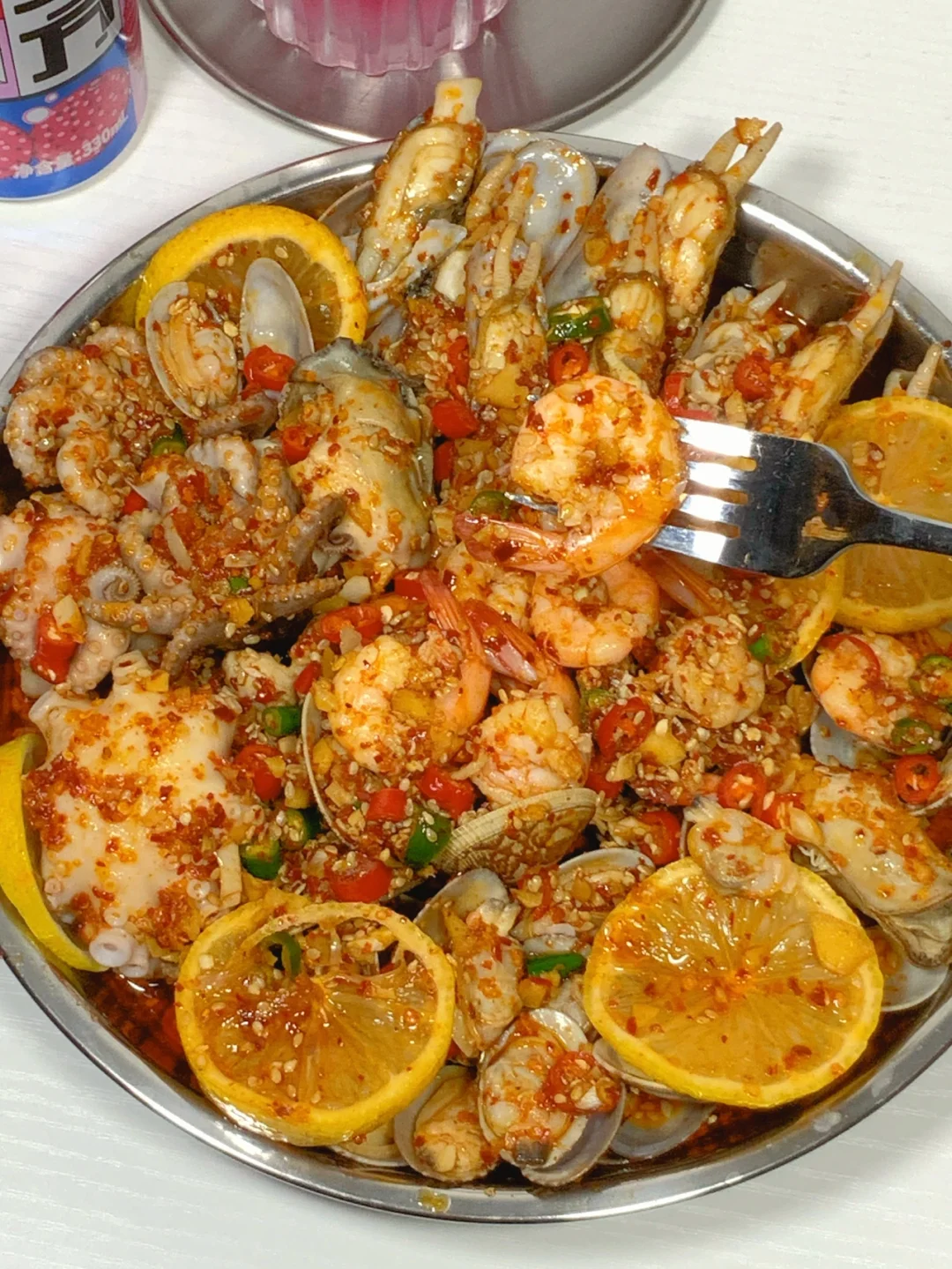酸酸辣辣超级好吃的捞汁小海鲜🦞比外面买的更好吃😋下酒追剧必备了⚠️ 食材篇🥬: 小海鲜、柠檬、蒜头、小米辣 步骤篇🥣: 1、小海鲜洗净,锅中放入葱姜料酒,将海鲜焯水后捞出过凉 2、碗中放入辣椒面、芝麻、蒜末,淋入热油浇香 3、放调料㊙️:三勺生抽、三勺香醋、一勺蚝油、一勺老抽、一勺白糖、少许盐,再放入半碗凉白开水搅拌均匀 4、酱汁淋入小海鲜中,放入柠檬片、小米辣,腌制一会更入味哦😯 - 酸酸辣辣超级开胃的捞汁小海鲜🦞🐟配上冰冰凉凉的气泡白酒🍶我喝的杨梅🍒味的超爽🥺这颜色好正啊!!!还只有五度🥰