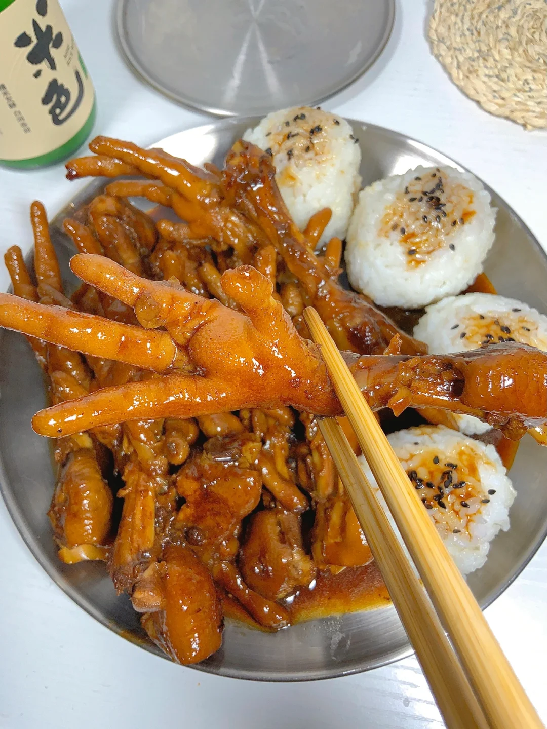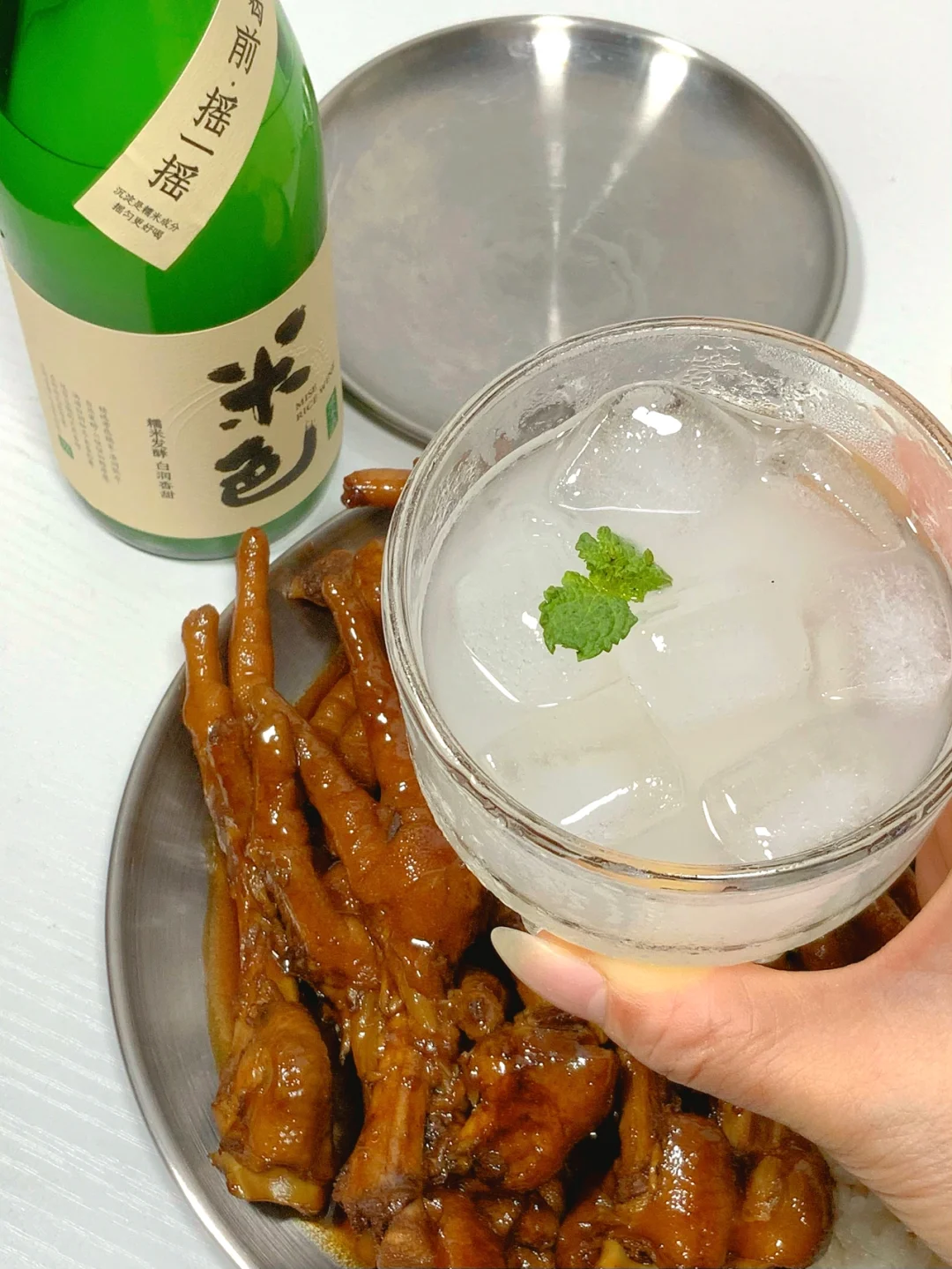 来一份鸡脚饭🍛鸡脚软糯入味❣️饭团🍙吸满汤汁❣️好吃到吮手指🤌 食材篇🥬: 鸡爪 步骤篇🥣: 1、锅中放入料酒、姜片,将鸡脚放入焯水,焯水后洗净 2、准备葱姜蒜、干辣椒、八角、花椒,锅中放油爆香配料 3、放入鸡爪煸炒,放入调料㊙️:两勺生抽、两勺老抽、两勺料酒 4、放入开水,稍微末过鸡爪,再放入两勺盐、两勺糖、少许胡椒粉,小火炖煮45-60分钟 ⚠️关火后焖半个小时更入味哦😯 - 超好吃的鸡脚饭🍛软软糯糯酱香十足🥺配上最近很火的米色米酒,一打开就闻到浓浓的米香,是记忆中外婆的味道,它的成分只有水、糯米和糖,只有6度,小酌没负担,微醺刚刚好~,加了🧊,透心凉超解腻,爽😊