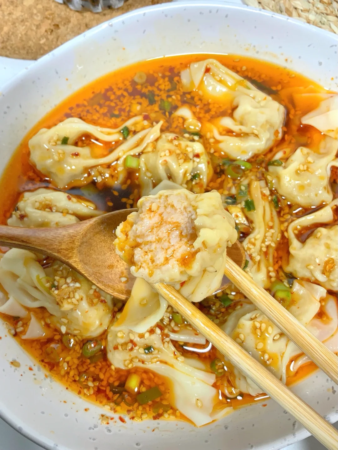 三分钟快手菜⚠️酸汤馄炖云吞酸汤水饺🥟夏天必备啊❣️酸酸辣辣好开胃🥺 吃完再来杯冰咖啡🧊爽☕️ - 食材篇🥬: 云吞 步骤篇🥣: 1、云吞入锅煮熟捞出,碗中准备:蒜末、葱末、芝麻、辣椒面,热油泼入 2、放入调料㊙️:一勺醋、一勺生抽、少许盐和糖搅拌均匀 3、煮熟的云吞放入碗中,放小半碗原汤,淋入调好的料汁,开吃✅ - 酸酸辣辣的云吞好吃到爆🥺可以按我的调味方法做🤔️懒的调味的😷用里面自带的红油料包❣️拯救夏日没胃口计划👋