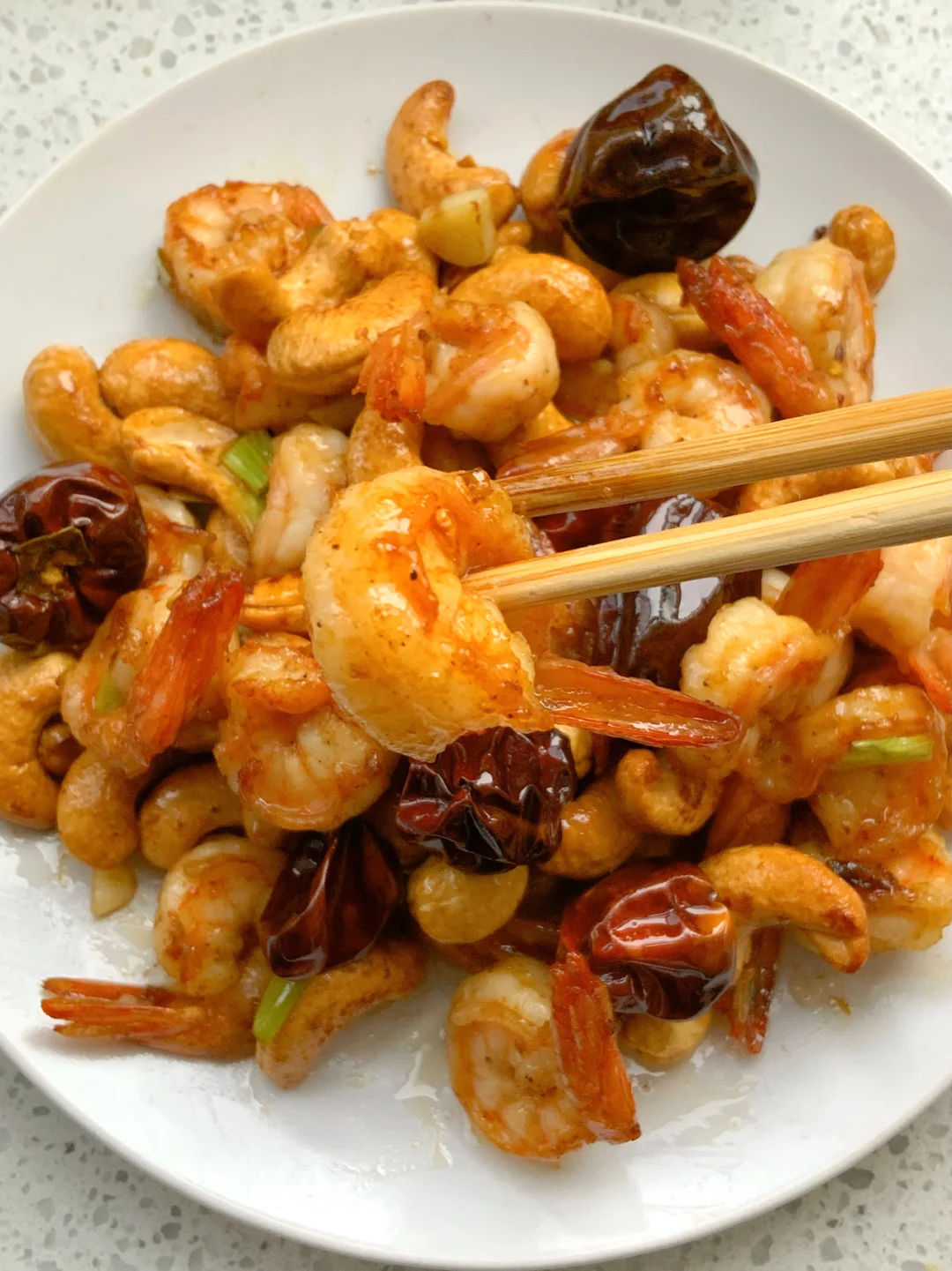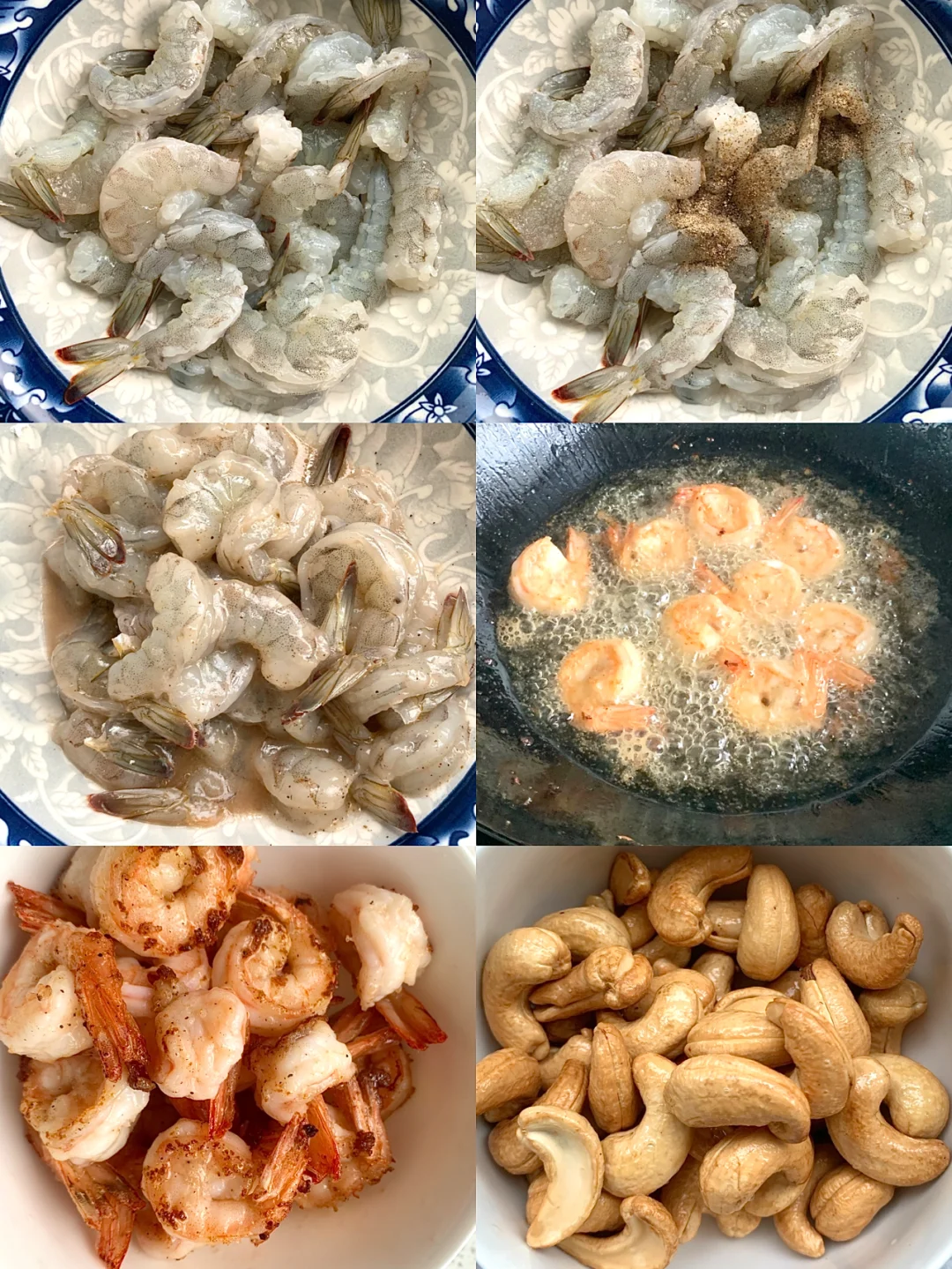 宫保鸡丁吃腻了吧❣️快来试试宫保虾球吧🦐大排档味道🥺满满的锅气❣️ 食材篇🥬: 鲜虾、腰果、灯笼椒 步骤篇🥣: 1、鲜虾去头去壳去虾线,开背后放入碗中,放少许盐、胡椒粉、一勺料酒腌制十分钟 2、腌制好的虾放入淀粉,或者直接裹淀粉下锅炸至卷翘捞出备用,准备熟腰果备用 3、调料汁㊙️:两勺生抽、一勺白糖、少许盐、少许鸡精、一勺水搅拌均匀 4、锅中放油,爆香葱姜蒜后放入虾尾、腰果灯笼椒翻炒,最后淋入料汁翻拌均匀✅ - 一人能干掉一盘🥺虾尾脆爽弹牙❣️腰果酥脆可口❣️