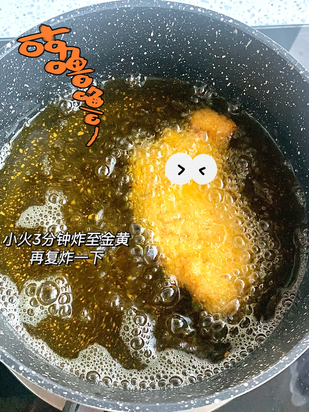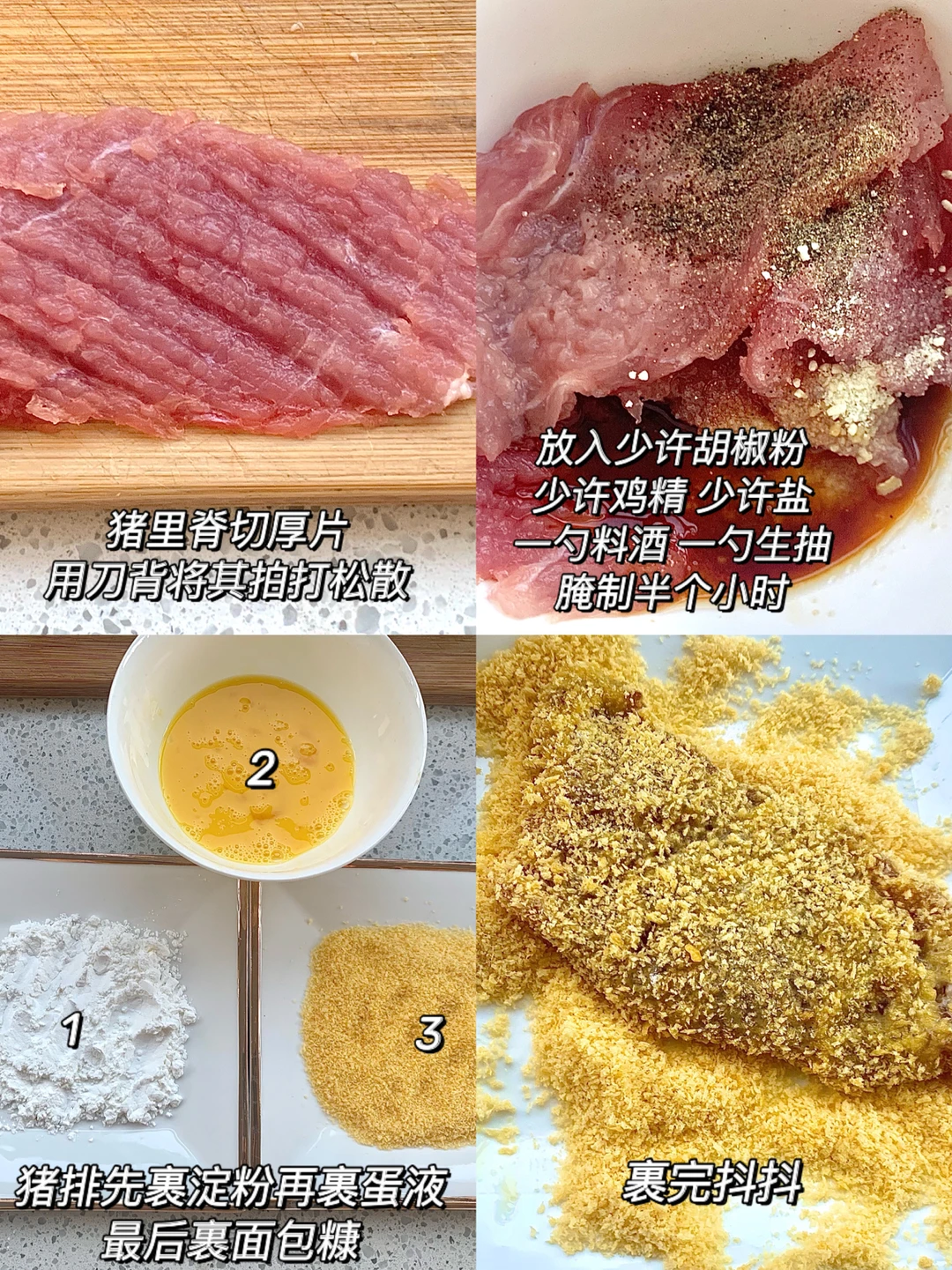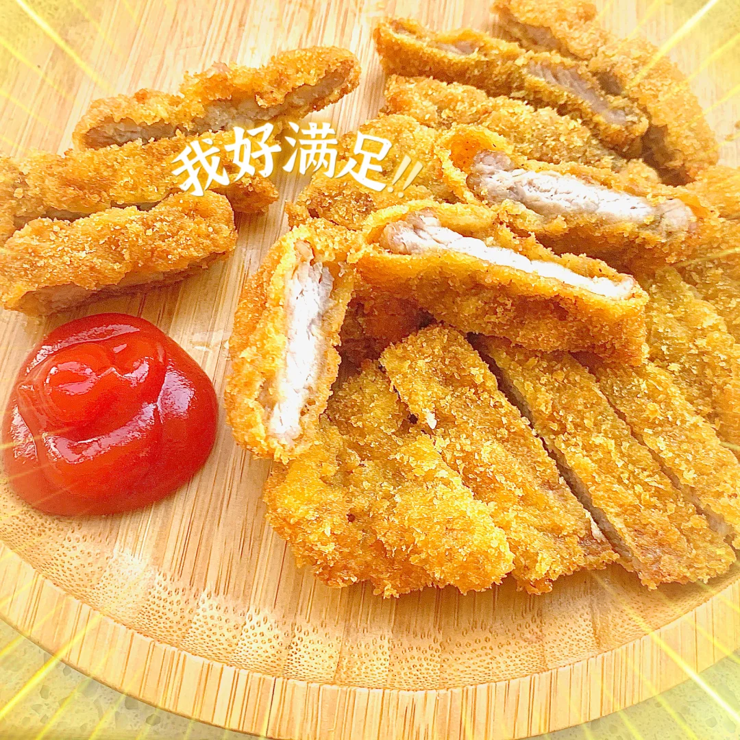 看着蜡笔小新来个日式炸猪排解解馋吧🥺简单易上手❣️酥脆很可口❣️ 食材篇🥬: 猪里脊、鸡蛋、淀粉、面包糠 步骤篇🥣: 1、将猪里脊切厚片,用刀背拍打至松软 2、放入少许盐、少许胡椒粉、少许鸡精、一勺料酒、一勺生抽抓拌均匀,腌制半个小时 3、腌制好的猪排先裹一层淀粉,再裹一层蛋液,最后裹上面包糠,裹好抖抖 4、油热小火炸三分钟左右至金黄色捞出,然后再复炸一次即可 沾上番茄酱,来上一块感受一下蜡笔小新的幸福吧❣️🙈
