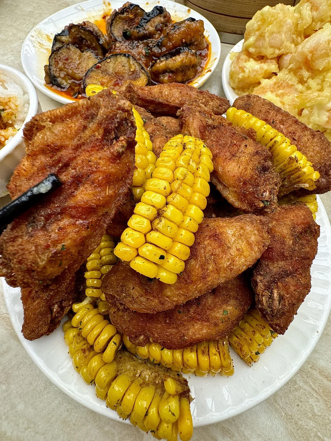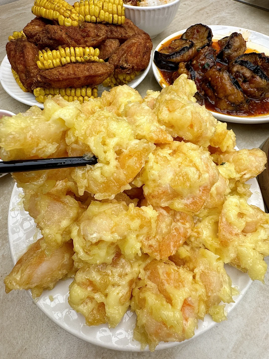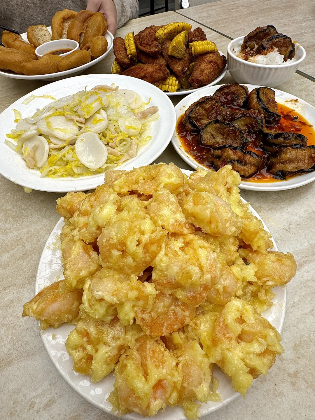芥末虾球、香酥芋夹、玉米鸡翅、黄芽菜炒年糕……还有蒸馄饨都好好吃啊🤤!!! 上海