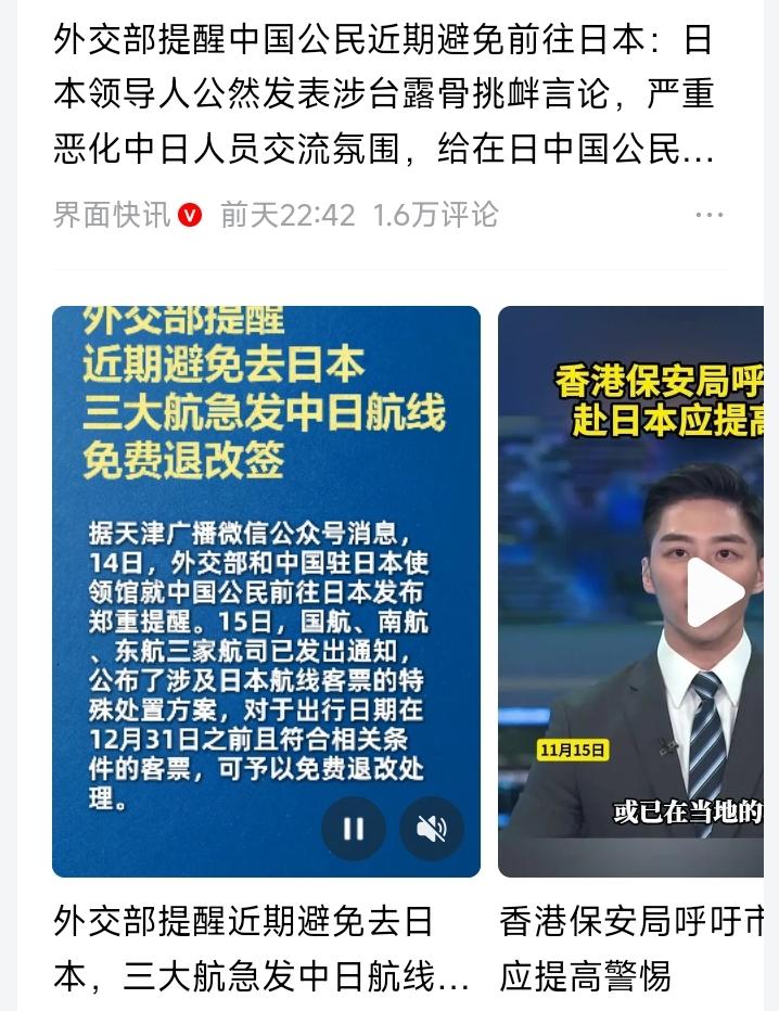 这旅行社胆子也太肥了!国家都明确提醒"避免前往日本"了,三大航空公司也都开放免费退改签了,这家旅行社居然还敢顶风作案,搞什么低价日本游! (阅读前请点个赞,点个关注,主页有更多你喜欢看的内容) 这哪是做生意,分明是拿命换钱的投机勾当,11月15日中国领事服务网发出通知,明说日本治安恶化、针对中国公民的遇袭案多发且部分未破,日本领导人还拿涉台问题挑衅,安全风险直线飙升。 紧接着国航、南航、东航等八大航司当天就跟进,开放了11月15日到12月31日涉日航班的免费退改,连退票手续费都免了。 这等于国家和航司联手给游客铺了条止损的路,可偏有旅行社偏要往火坑里推人,999元大阪5日游、1688元本州全景游的广告满天飞,敢这么顶风作案,简直是利欲熏心到丧心病狂。 国家的提醒可是相当严肃,其中藏着两个关键信号:一是治安硬伤,“多起在日中国公民遇袭事件”“部分案件迄未侦破”,驻日使领馆能公开这么说,说明风险已经到了必须警惕的程度。 11月14日外交部领事司先发文预警,15日又通过领事服务网重申,连紧急求助电话、各总领馆的保护电话都列得清清楚楚,这是怕真出了事游客找不到援手。 二是政治氛围恶化,“日本领导人公然发表涉台露骨挑衅言论”,这直接激化了当地的反华情绪,右翼分子的集会最近越来越频繁,东京千代田区11月上旬,刚发生中国留学生因佩戴国旗徽章被泼油漆的事,凶手至今没抓到,这种时候往日本跑,就是自讨苦吃。 可旅行社的广告里只字不提这些,反而吹“樱花季余韵”、“免税店折上折”,把致命风险藏得严严实实,这和谋财害命有啥区别? 再看航司的动作,八大航司集体开放免费退改,本身就是对国家提醒的强力呼应,更是给游客的“逃生通道”。 国航、南航、东航这三家巨头,连适用客票的票号开头、旅行日期范围都界定得明明白白,只要是11月15日12点前买的票,年底前的航班都能免费退、免费改,甚至里程兑换的票都包含在内。 四川航空、春秋航空这些航司更细致,春秋航空直接列出了大阪、福冈等十个涉日航点,还开通了小程序自助退改通道,怕游客打电话排队耽误事。 航司这么做不图赚钱,就是要担起社会责任,知道这时候让游客飞日本,既是对游客不负责任,也可能给驻日使领馆添负担。 可这家旅行社倒好,航司在拆“风险航班”的雷,它却在搭“低价陷阱”的台,深挖一层,这旅行社敢顶风作案,就是吃透了低价游的套路,更赌定了部分游客贪小便宜的心理。 所谓“999元大阪5日游”,看着便宜,实则全是坑:机票是凌晨的红眼航班,住宿离市区几十公里,吃饭只包两顿泡面,剩下的全靠自费。 行程里一半时间是逛免税店,不买够2000元不让走,导游还拿着“不消费就扔在景点”的话术威胁;更狠的是隐藏成本,签证费、意外险全得另交,真算下来比正规团还贵。 可这些套路在平时顶多是宰客,现在叠加日本的安全风险,就成了致命隐患,导游为了赶购物点,可能让游客走偏僻小路,遇上右翼分子都没地方躲。 真出了遇袭、生病这些紧急情况,旅行社在当地的“黑地接”根本没能力协调,只能让游客自己打110、119,语言不通加上治安混乱,后果不堪设想。 之前就有媒体曝过,有些违规旅行社,连驻日使领馆的保护电话都没存,游客出事了只会说“自认倒霉”。 更可气的是,这种行为不光坑游客,还是在拆国家的台。 国家发布安全提醒,是基于大量真实案例和情报做出的专业判断,目的是保护公民生命安全,可旅行社的低价广告一撒,等于告诉外界“这提醒是小题大做”,既扰乱了正常的旅游市场秩序,也可能让部分游客误以为“风险是假的”。 要真出了事,不仅游客遭殃,还得劳烦驻日使领馆紧急介入,占用本就紧张的领事保护资源。 11月17日就有网友曝料,某违规旅行社组织的团,在大阪街头遭遇右翼集会,游客吓得躲进便利店,旅行社的地接导游早就跑没影了,最后还是驻大阪总领馆派工作人员去解围的,这就是给国家添乱。 而且根据《旅游法》,旅行社明知存在安全风险仍组织旅游活动,最高可罚50万元,还得承担游客的全部损失,可这家旅行社敢赌,要么是没把法规放眼里,要么是觉得能靠“签免责协议”甩锅,这种心存侥幸的投机,早晚会栽大跟头。 如此看来,这事暴露的不只是个别旅行社的无良,更是旅游市场监管的漏洞和部分游客的认知误区。 国家的提醒不是“建议”,而是底线警示;航司的免费退改不是“福利”,是逃生机会;而低价游的陷阱,从来都藏在“便宜”两个字背后。 旅游是为了开心,不是为了玩命,旅行社要是连这个都想不通,趁早别干这行。 现在离年底还有一个多月,涉日航班的退改通道还开着,希望那些被低价忽悠的游客赶紧醒过来,别等出了人命再追悔莫及,毕竟安全这根弦,什么时候都不能松。 对此你还有什么想说的?欢迎在评论区留言讨论!