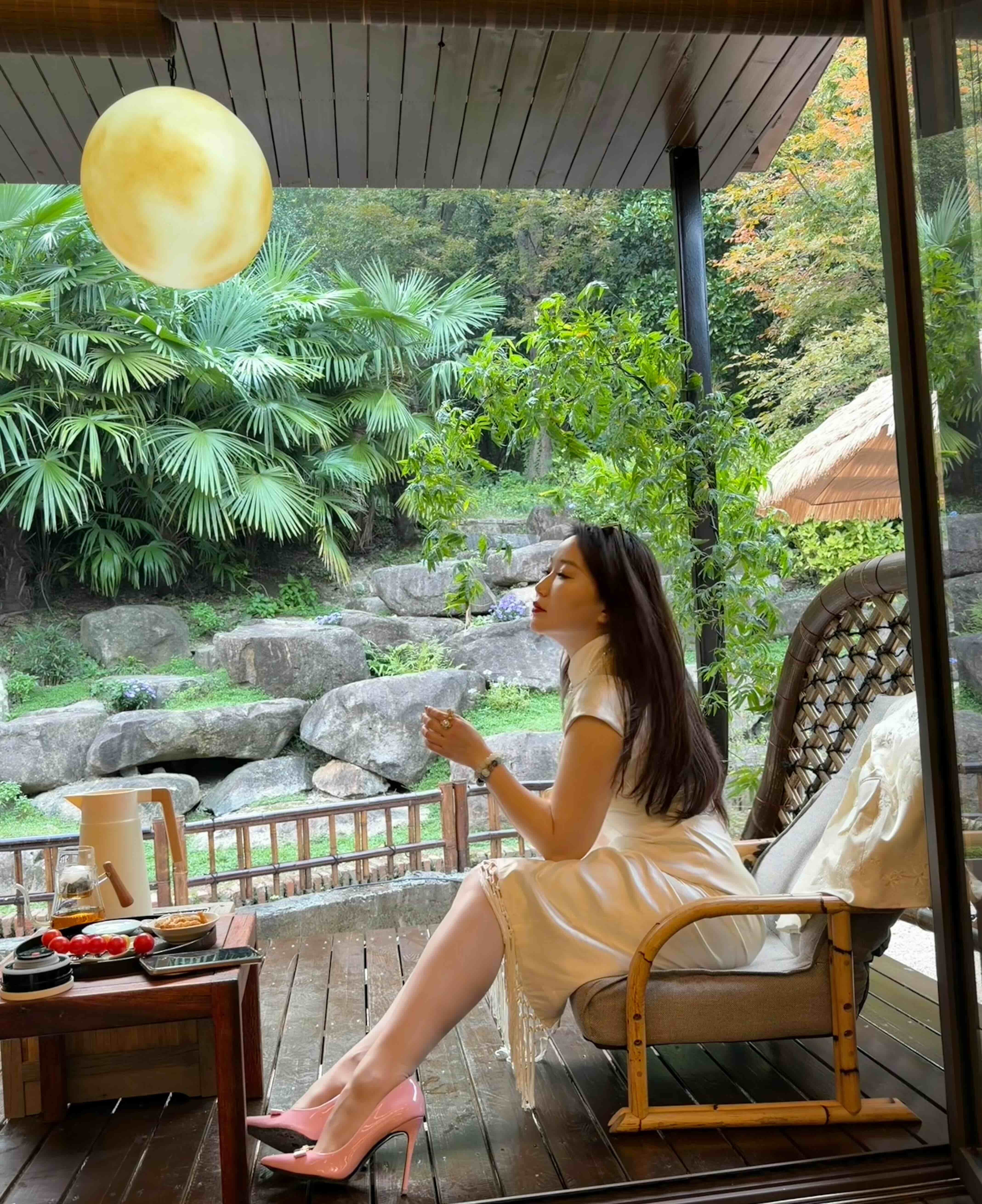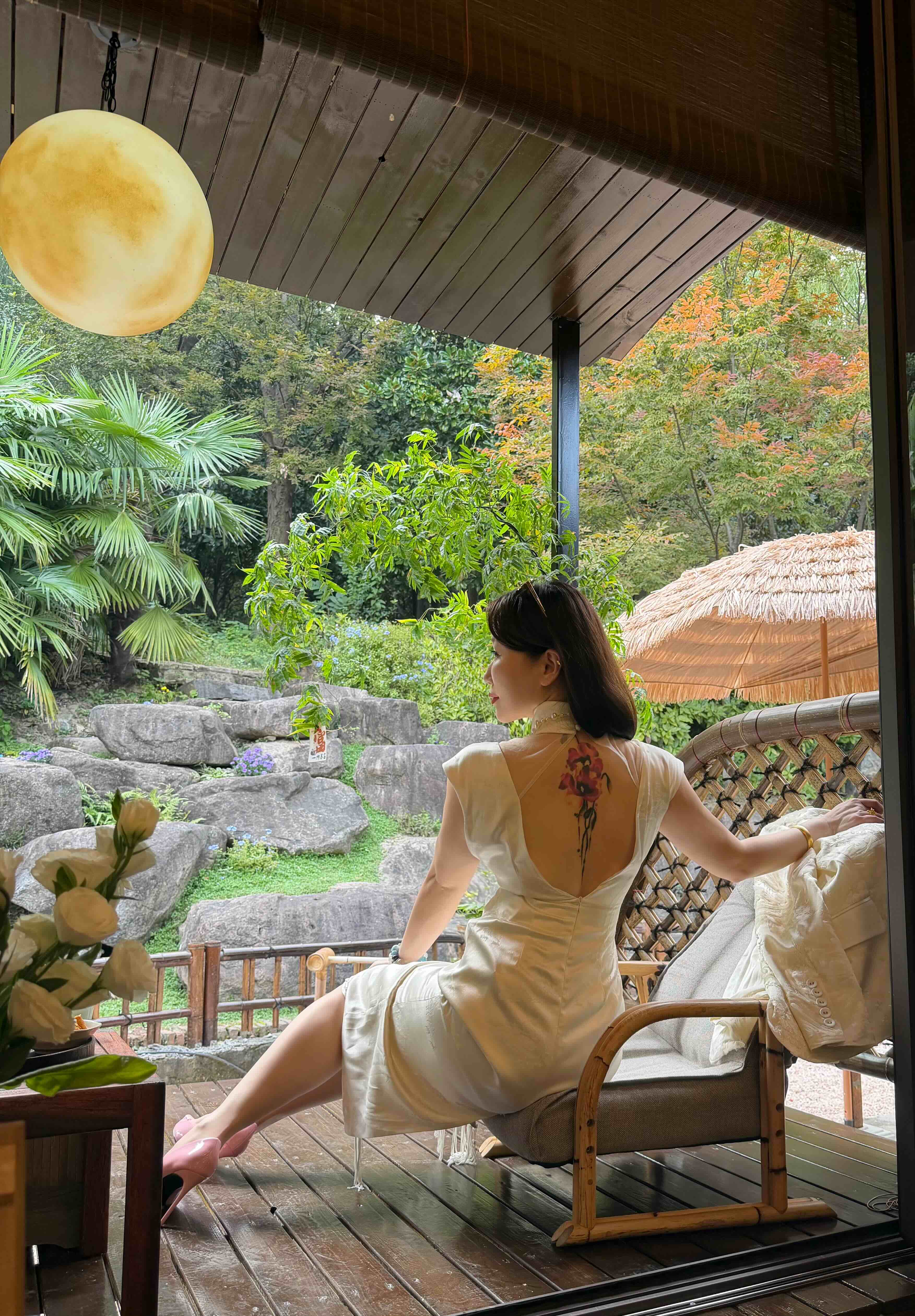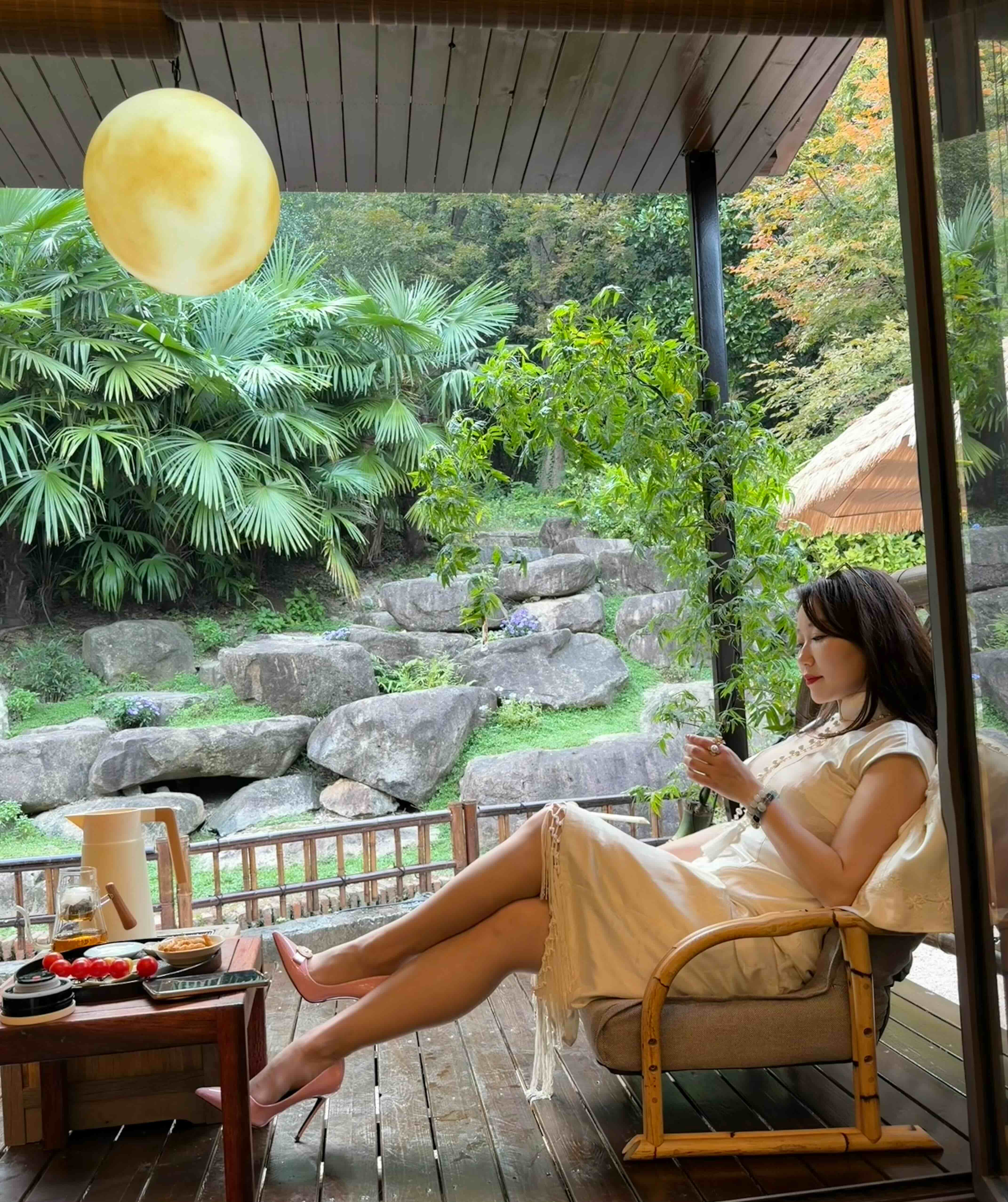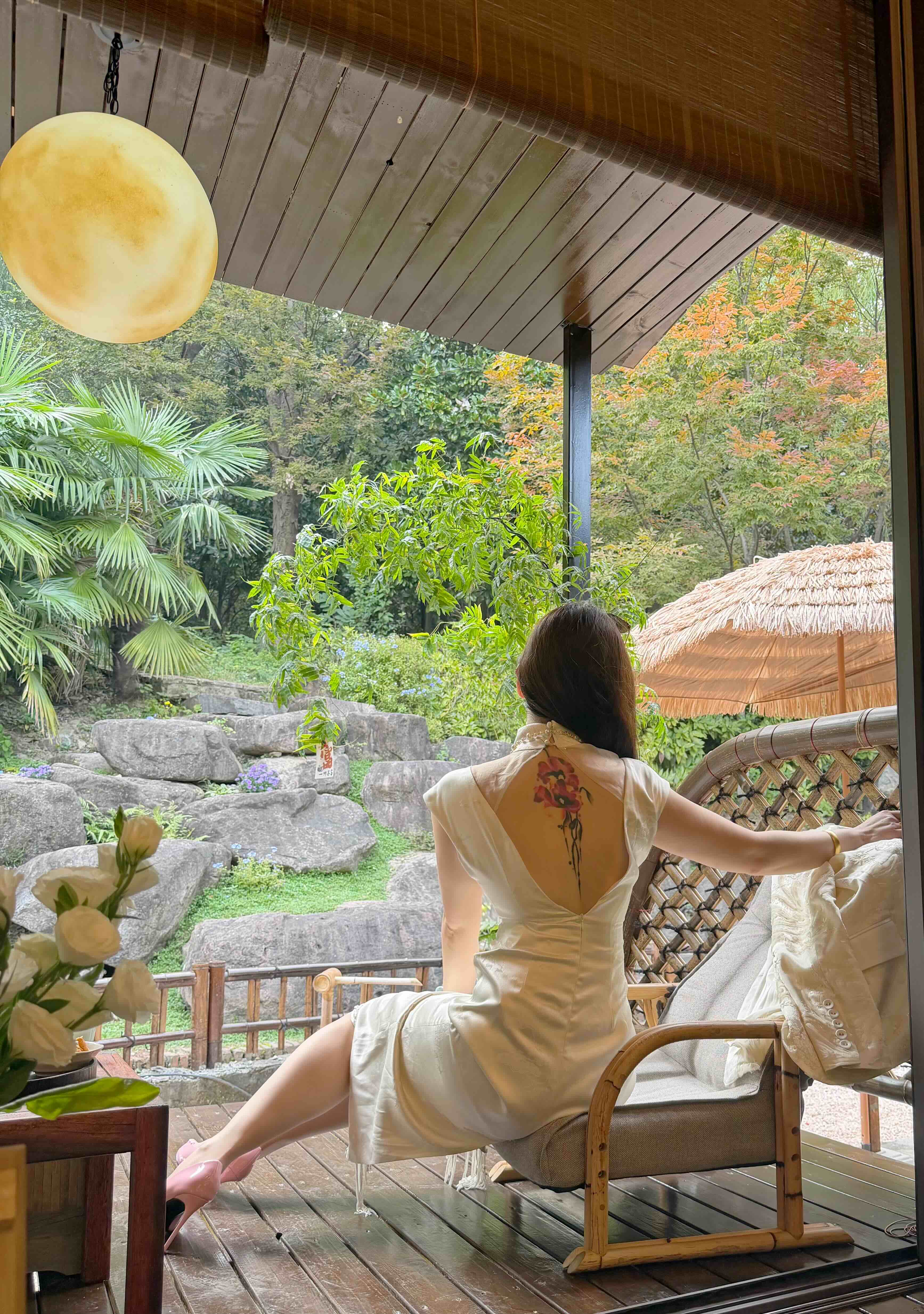 一袭深蓝旗袍,一汪碧水湖光,时光在此温柔停留,优雅无需多言。