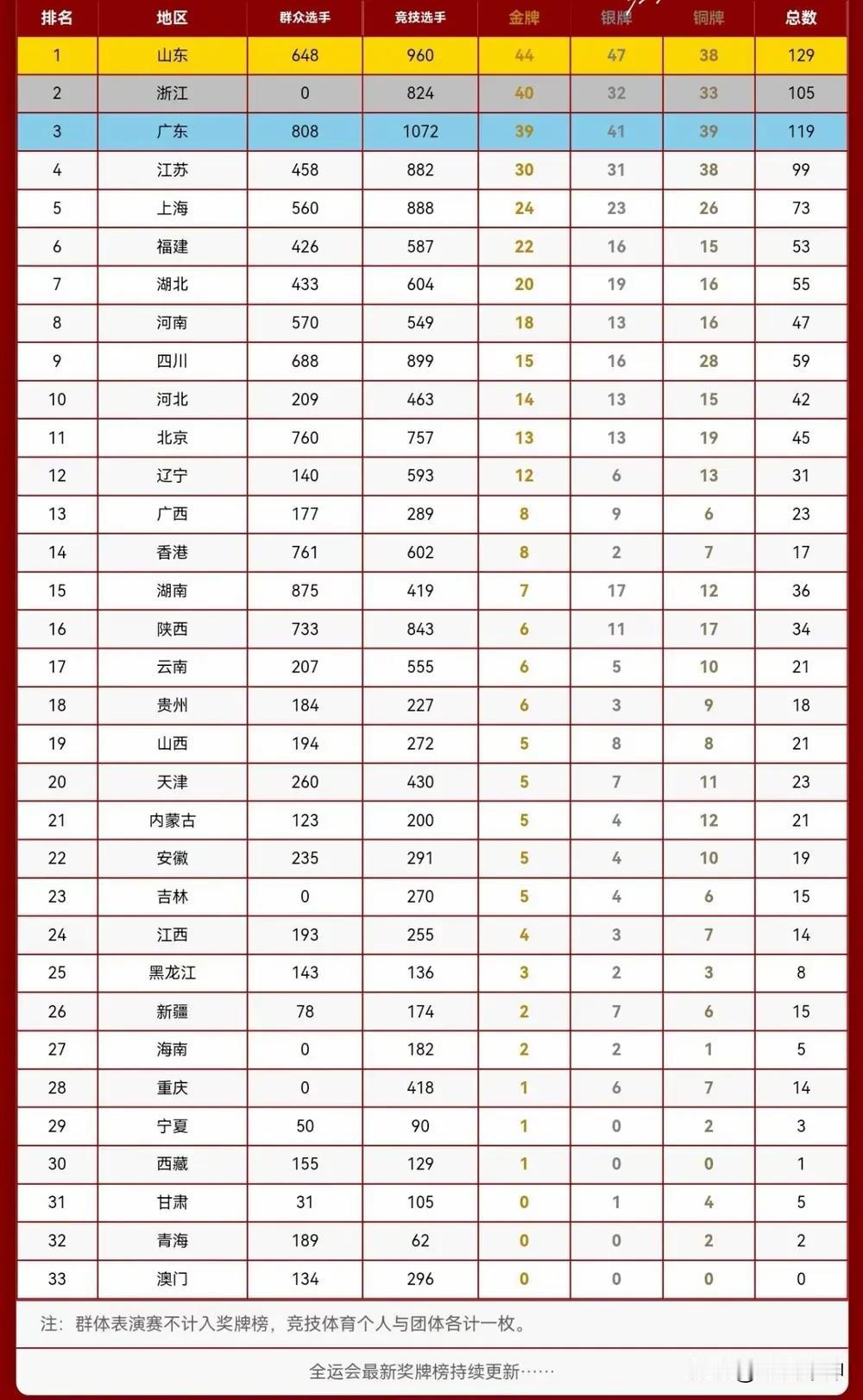 游泳项目是本届广东代表团的短板,山东浙江都表现出强大的夺金势头,就这个项目被山东拉开了,也被浙江追上了。