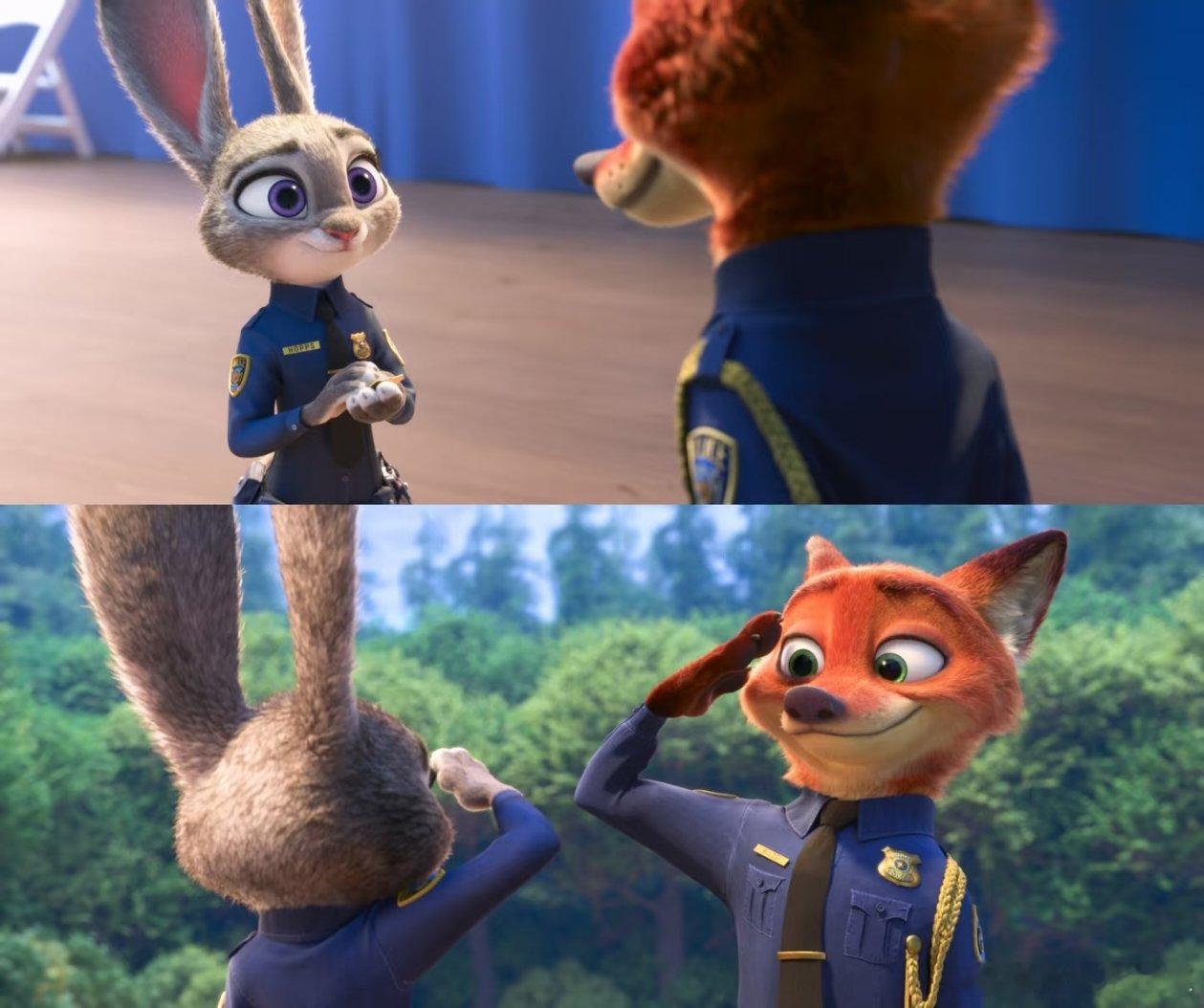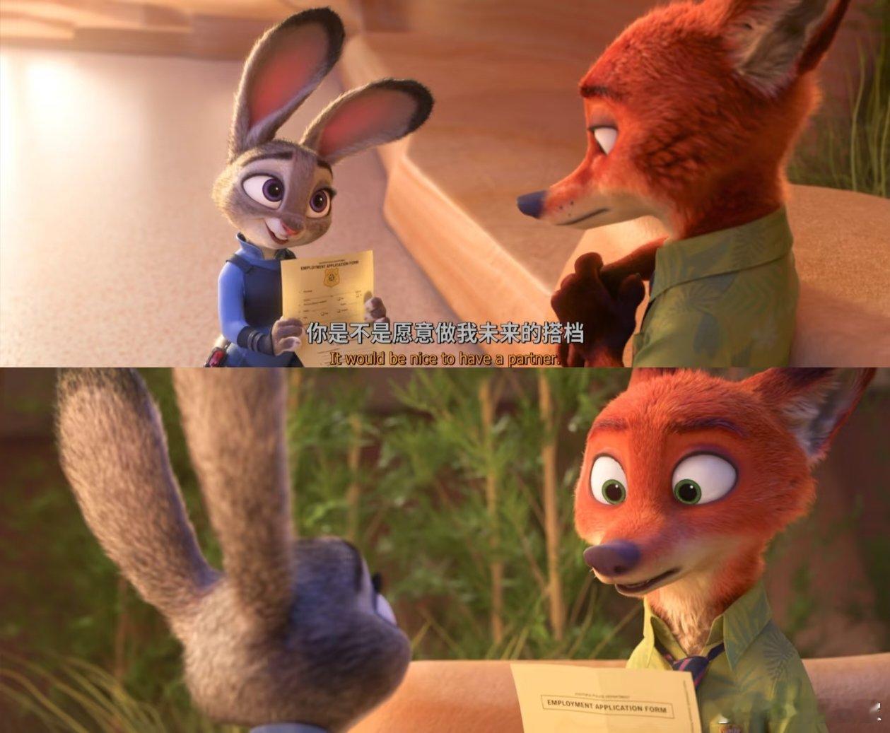 闪光灯下的唯美氛围,朱迪拉着尼克转圈圈的灵动,整理领结的温柔,挽臂同行的自然,这哪是同事,十袋胡萝卜先磕为敬~