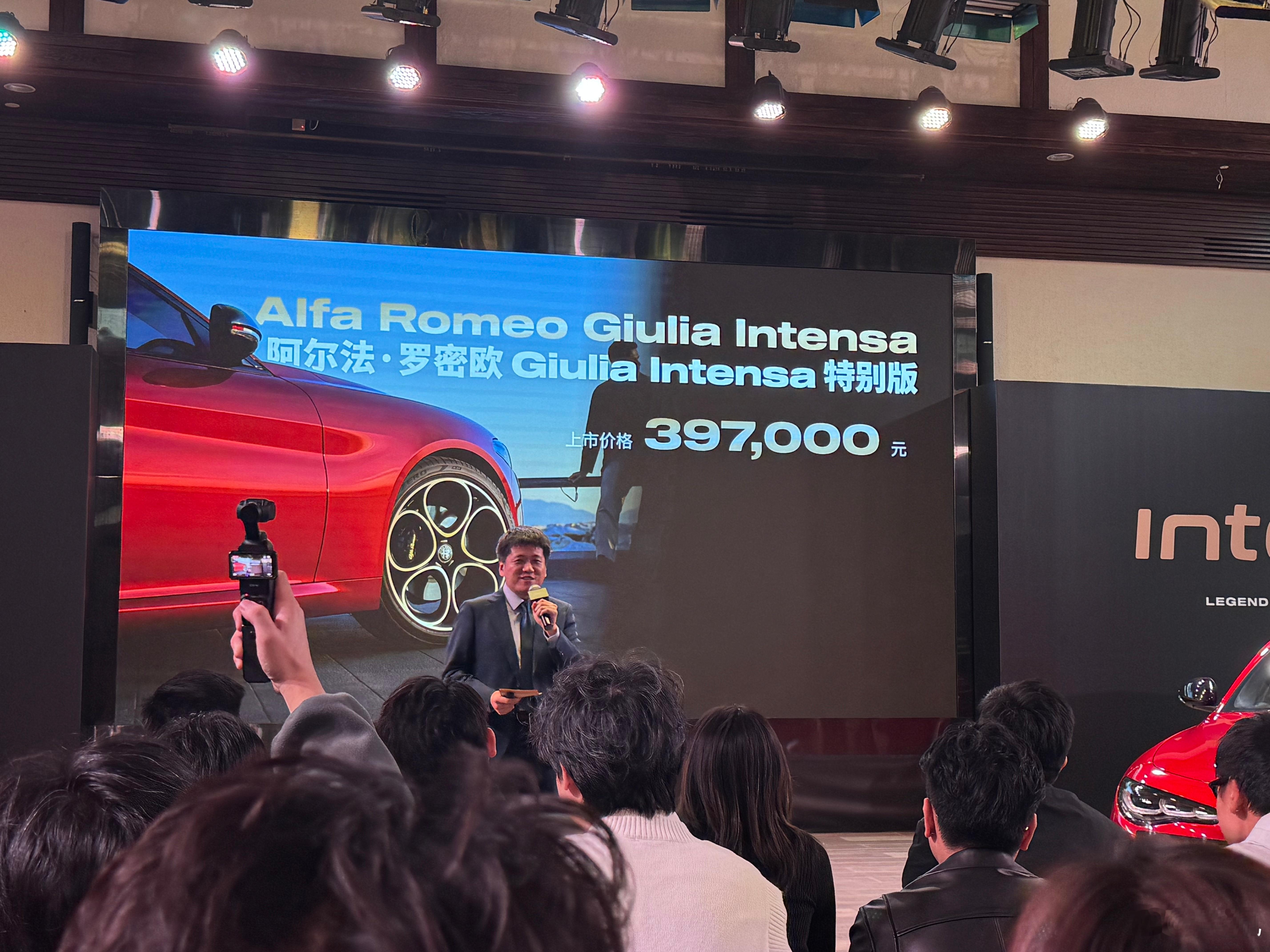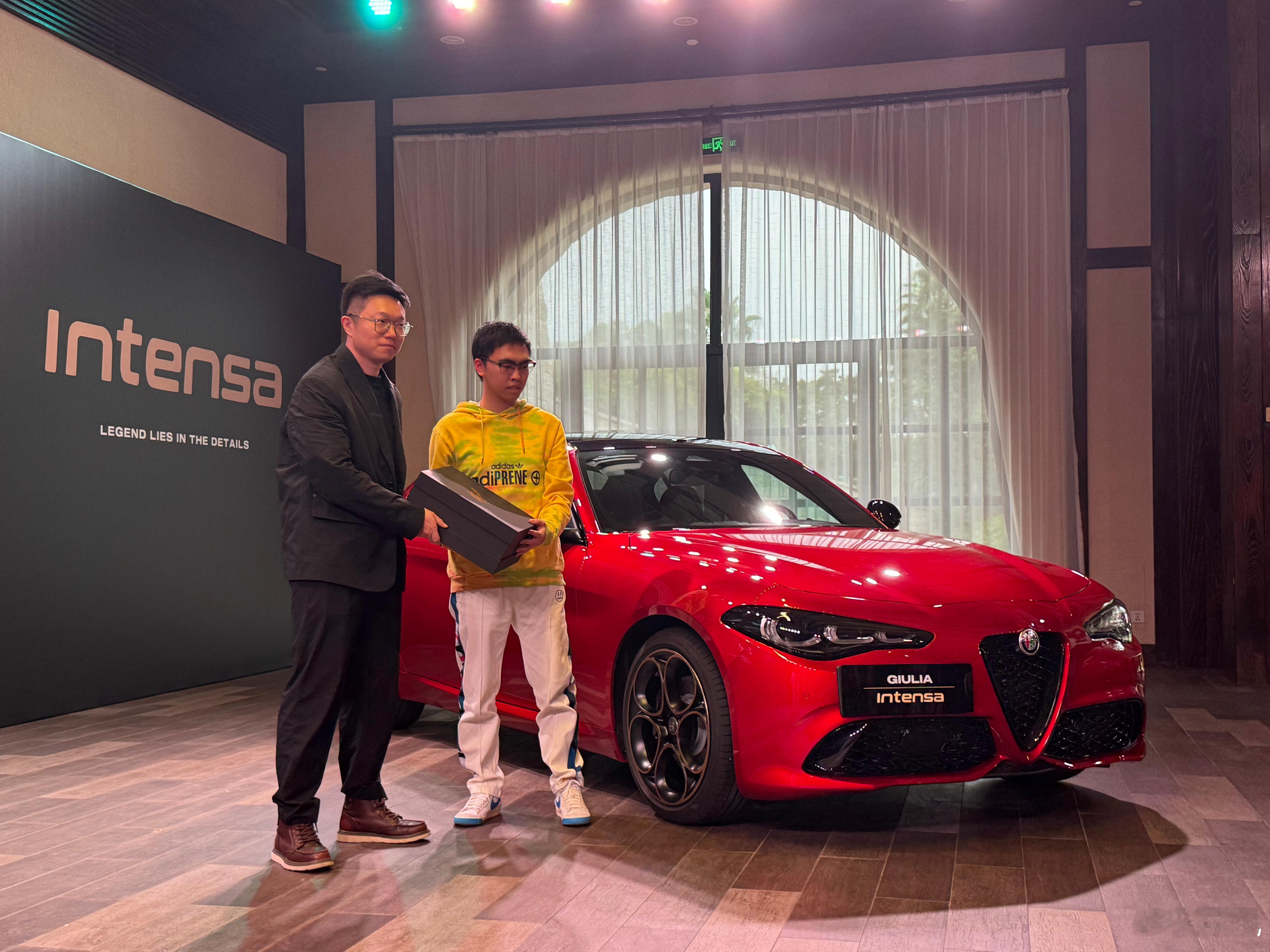 四叶草款轮毂金色配色,还有碳纤维传动轴,阿尔法·罗密欧Giulia Intensa做了一个简单的发布会,国内上市了。车旁边小伙子就是这款车国内第一位车主,看来“00后”也不是只看电车呢?