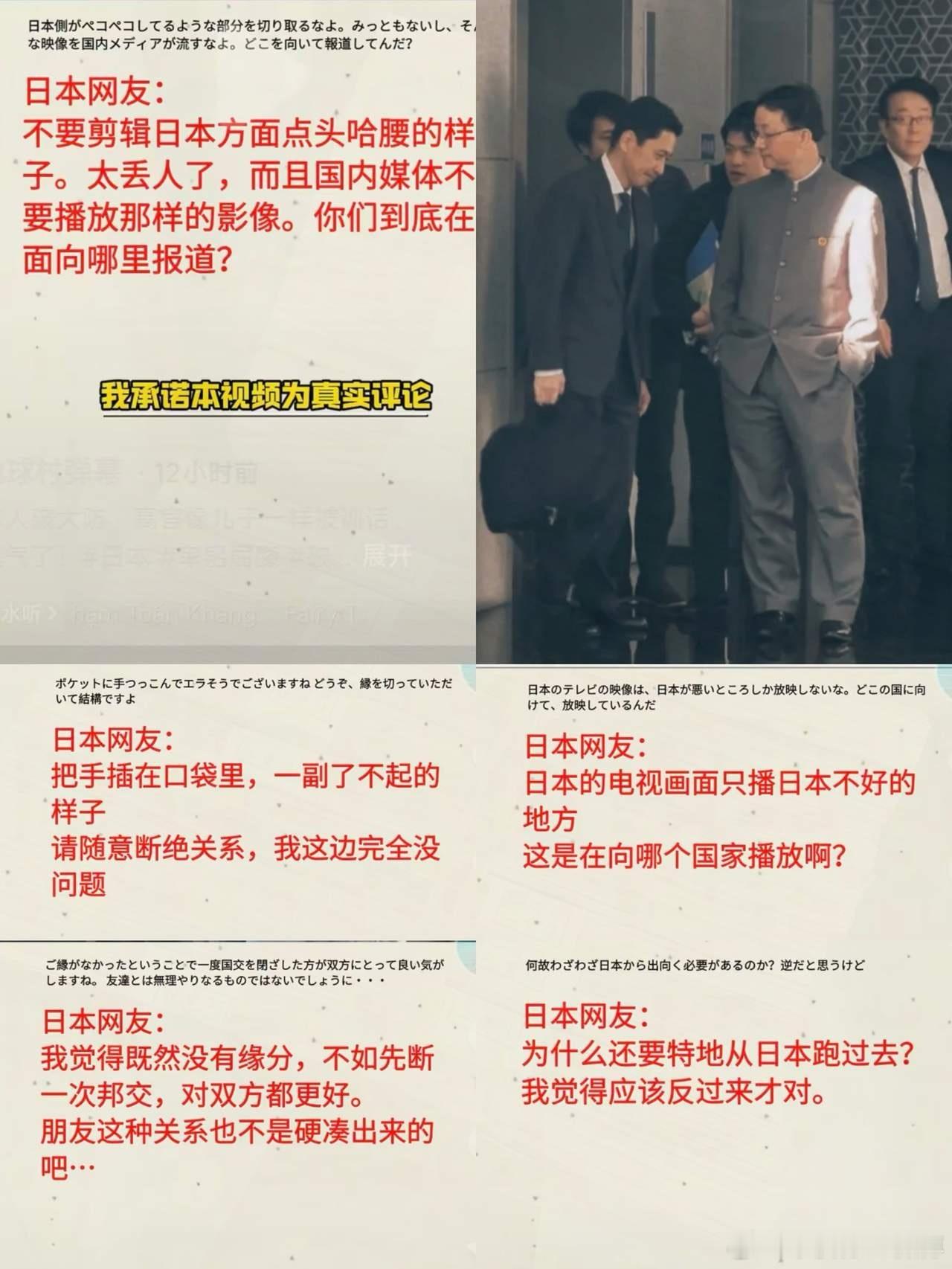 这个画面在日本迅速传开,日本网友简直气疯了!日本网友:不要剪辑日本方面点头哈腰的样子,太丢人了,而且国内媒体不要播放那样的画面,你们到底在面向哪方面报道?昨天刘劲松的这个视频可以说是迅速火翻了,日本网友更是气的张口就来,不过不知道大家发现没,日本人的文笔是真的差,来来回回就那么几句,还都没有精髓和杀伤力,话又说回来,文化都是学别人的,却只学到一点皮毛,也是可悲可叹。