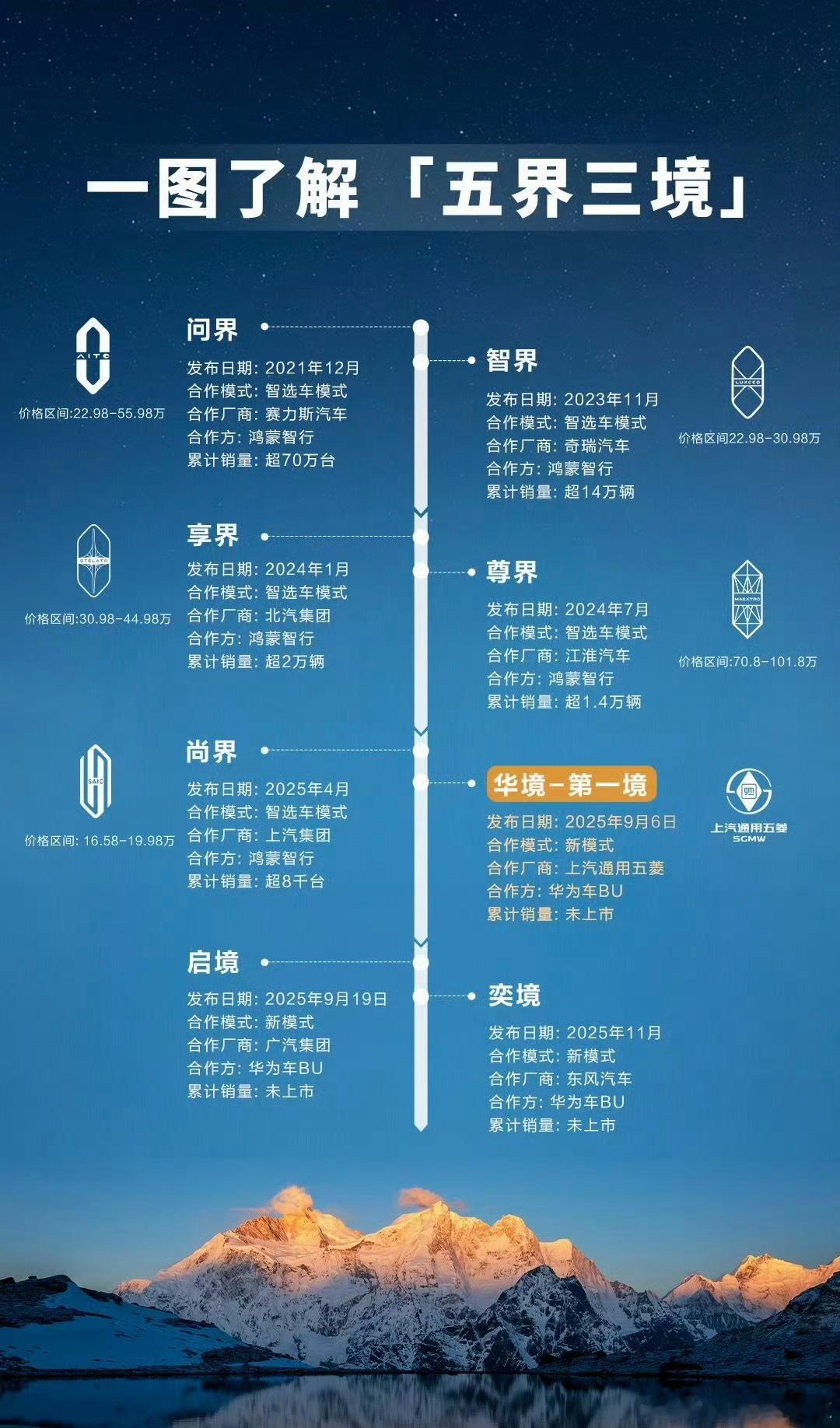 这图应该是宝骏做的?想捆绑来一波?但据我所知,明天华为乾崑生态大会只会发“两境”,东风的X境和广汽的启境。这个境系列之前和大家聊过。「境」系列有点类似于当年的 HI 模式,但 HI 模式只在车上贴个 HI 标。极狐品牌依然是极狐品牌,这次是和车企合作单独推出一个品牌。所以「境」系列会搭载华为乾崑生态,包括乾崑智辅助驾驶、鸿蒙座舱、电机等等华为的技术,这一点和鸿蒙智行的五界类似。不同的是,鸿蒙智行五界的产品是可以进入到华为门店里卖的,「境」系列是不进华为展厅的。
