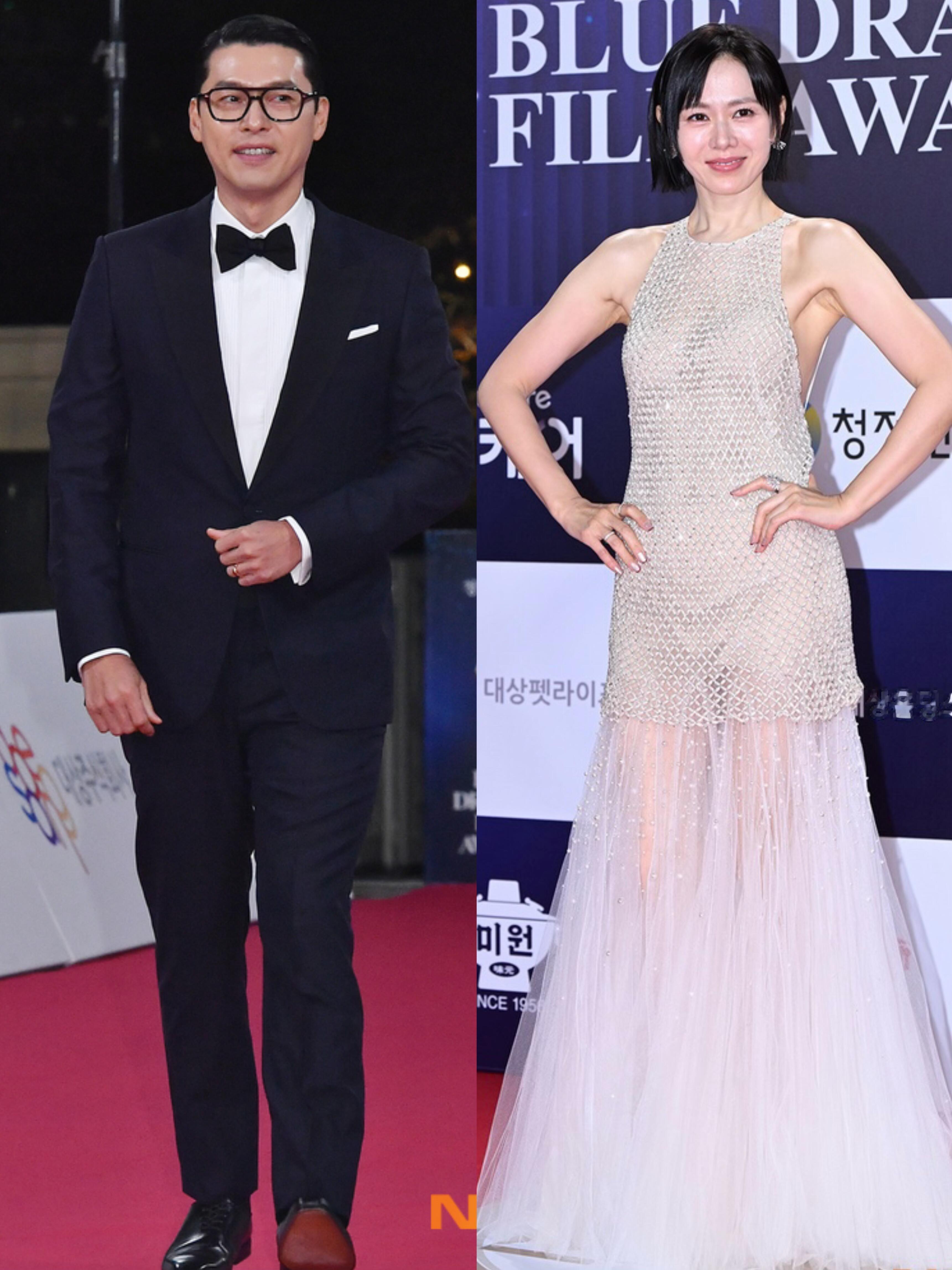 玄彬孙艺珍青龙奖红毯造型,两位发型全靠脸撑着了
