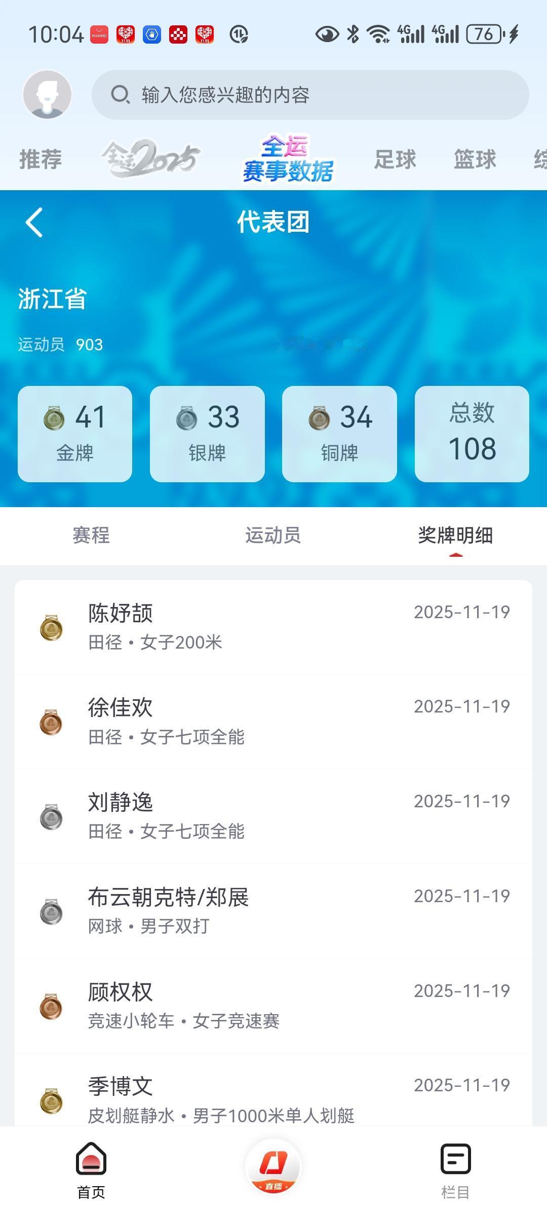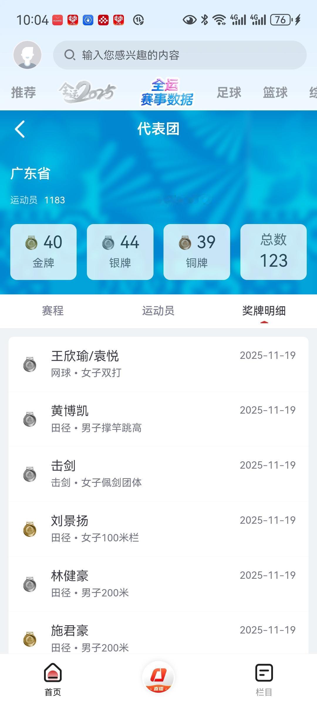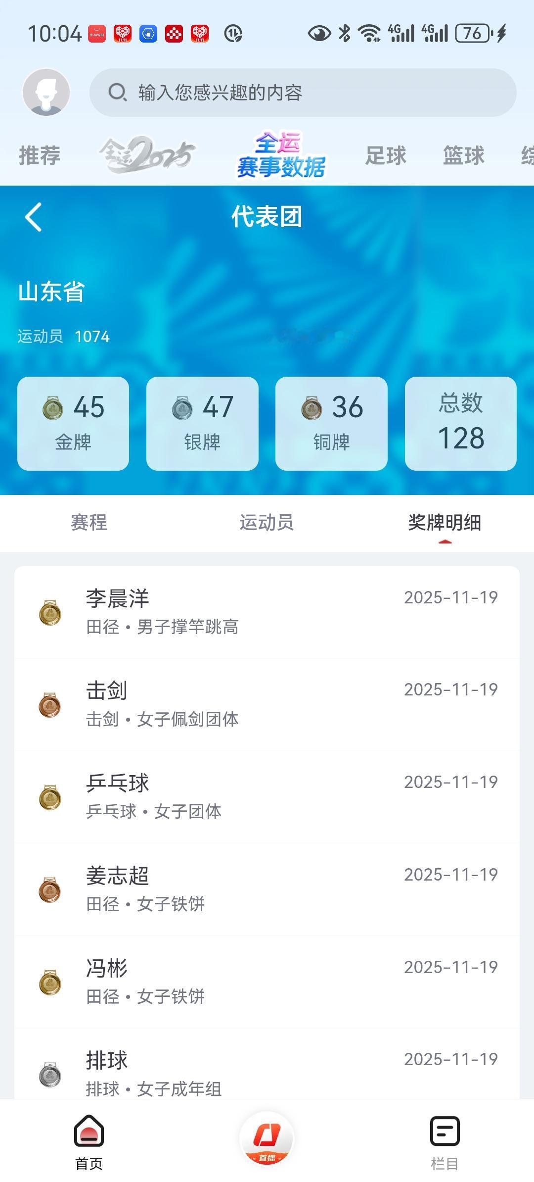全运会最新金牌榜,山东45金47银36铜稳居榜首,浙江41金33银34铜第二,广东40金44铜39铜第三。如果加上全国青少年三大球运动会和青少年田径运动会的金牌,则山东优势更明显,已领先8枚(大概,具体也算不清了),广东则超过浙江排名第二。再实际上还剩明天最后一个比赛日的情况(最后一天只有女子水球,决赛双方是上海对天津)下,山东已经基本锁定金牌榜榜首。剩下就是广东和浙江的第二名之争了。广东明天夺金点主要有U22男篮、男子棒球、男子三级跳远以及田径的三个接力(男子4乘100、男子4乘400和女子4乘400)。浙江则有羽毛球的三项(混双、女单和男双)、网球男单、田径男子1500和女子4乘100、皮划艇等。另外在击剑两队也有进入八强,但应该夺冠可能性不大。山东最后一天在皮划艇、飞碟、射箭、举重、田径男子4乘400等项目仍然有冲金实力,所以基本锁定全运五连冠。广东这次主要就是输在游泳、赛艇、皮划艇、羽毛球、击剑、网球这几项了。