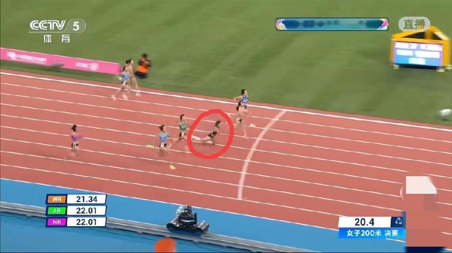 全运会田径赛场突发状况,四川队的女子短跑选手、刚刚夺得400米冠军的刘英兰后半段突然摔倒…… 这事发生在女子200米决赛上,在最后20米的跑道上,刘英兰毫无征兆的摔倒了,视频显示,她也没有跟两边的选手发生肢体接触。网友纷纷猜测她是被边上的冠军选手陈妤颉打乱了节奏,脚下拌蒜了…… 真的有点太可惜了,本来刘英兰是可以站上领奖台的!但愿她没有受伤!!!