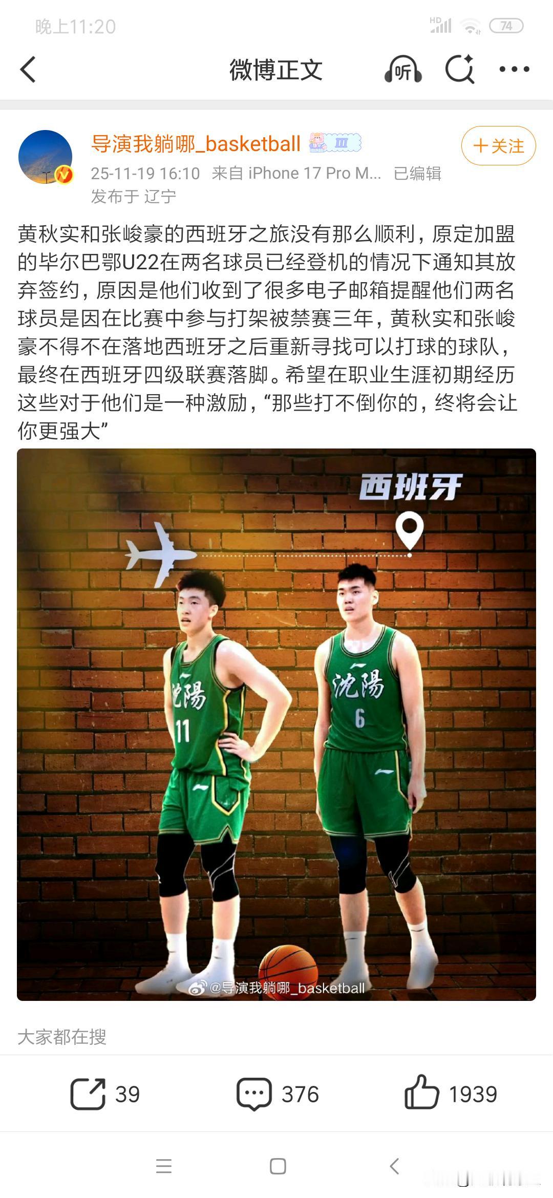 真的假的,谁这么损?辽篮小将张峻豪和黄秋实因打架斗殴遭禁赛三年的事被举报到西班牙,导致两人被毕尔巴鄂U22放弃签约,被迫落地西班牙后要重新寻找球队,最后历经艰辛才得以加盟西丁联赛,这真的是好事不出门,坏事传千里,到底是谁举报的?虽然张峻豪和黄秋实打架斗殴是事实,但是发邮件举报到西班牙确实不道德,有点落井下石的意思,如果人家想清楚和了解他俩的履历的话,肯定会调查的,背后发邮件举报确实有损人的意思!