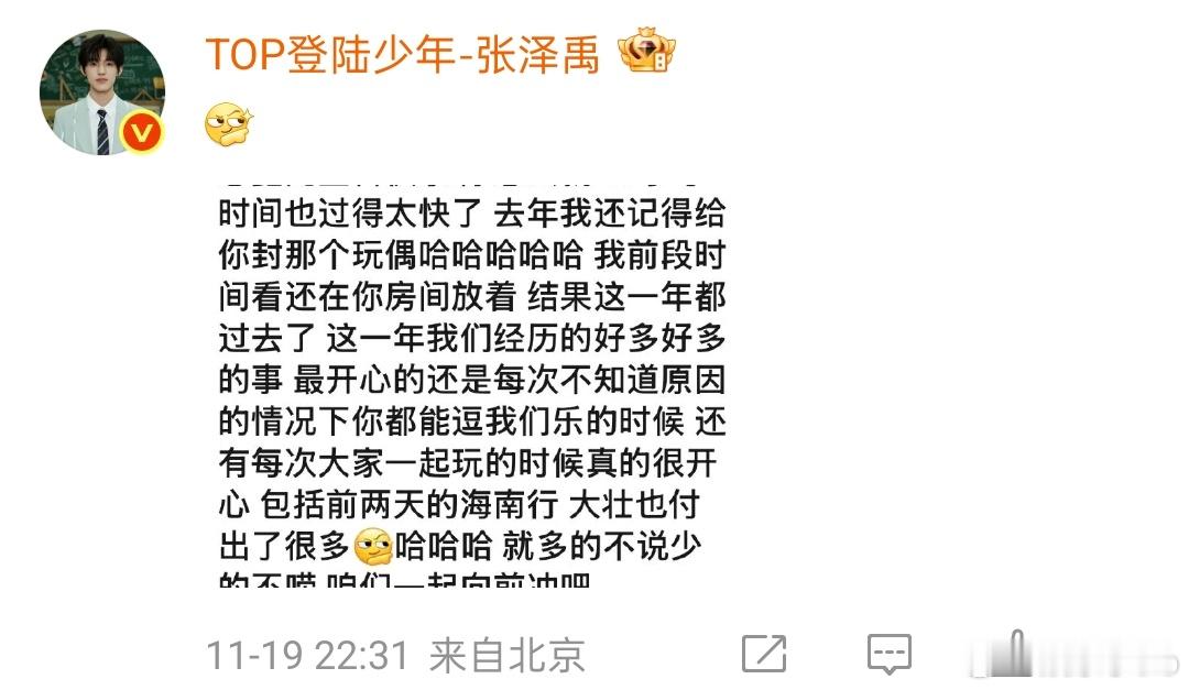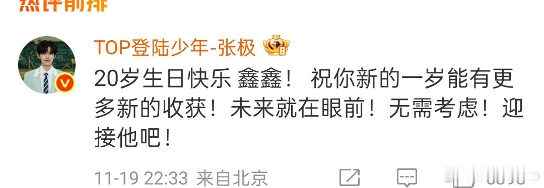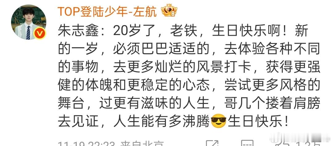 张泽禹,张极,左航,苏新皓在朱志鑫微博底下给他送生日祝福了!!㊗️20岁的朱志鑫