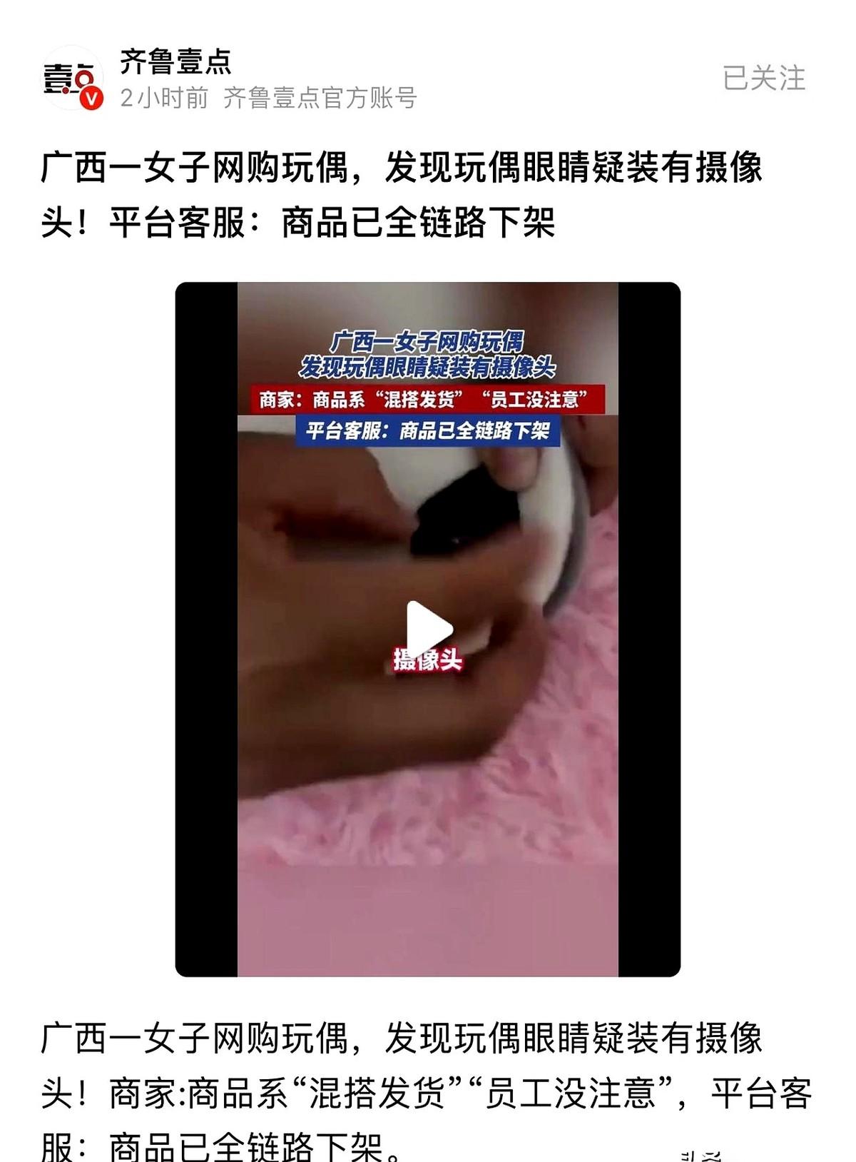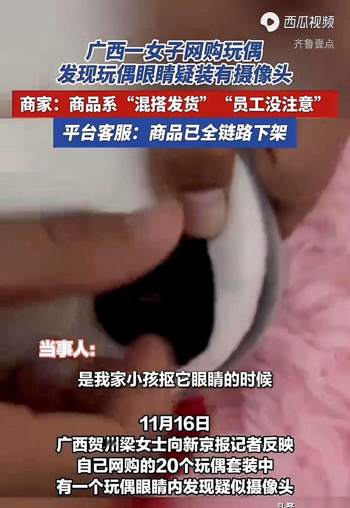 我跟你讲,有些事儿,真是想一想就后背发凉。 你给孩子买的毛绒娃娃,摆在床头,每天陪他睡觉的那个。 有一天,它的一只眼睛,被孩子抠掉了。你捡起来一看,发现那根本不是眼睛,是个摄像头。 这事儿就这么发生了。 一个妈妈,买了20个娃娃。孩子淘气,掰掉一个的眼睛。 就这么一个巧合,让她发现自己家,可能正在被“直播”。 那种感觉,你懂吗? 不是愤怒,是瞬间的冰冷,从脚底板一直窜到天灵盖。 你最私密的空间,你孩子最天真的日常,可能都成了别人屏幕里的“内容”。 去找商家。 商家轻飘飘一句:哦,不好意思,员工混搭发货,搞错了。 搞错了? 我买条裤子你发件上衣,这叫搞错。 我买个娃娃你塞个摄像头,这叫什么?这叫作恶! 最恐怖的是什么? 是如果那天,孩子的力气小一点,那个眼睛没掉呢? 那个小小的、伪装起来的镜头,会继续在那个角落里,看着你,看着你的家,看着你的孩子长大。 一天,两天,一个月,一年…… 细思极恐。 真的,以后买这种带眼睛的玩具,到手第一件事,就是掰开看看。 听起来像个笑话,但又无比心酸。 我们只是想给孩子一个正常的童年,怎么就得把自己逼成一个侦探、一个排雷工兵? 这已经不是简单的买卖纠纷了。 这是对“家”这个字,最恶毒的侵犯。