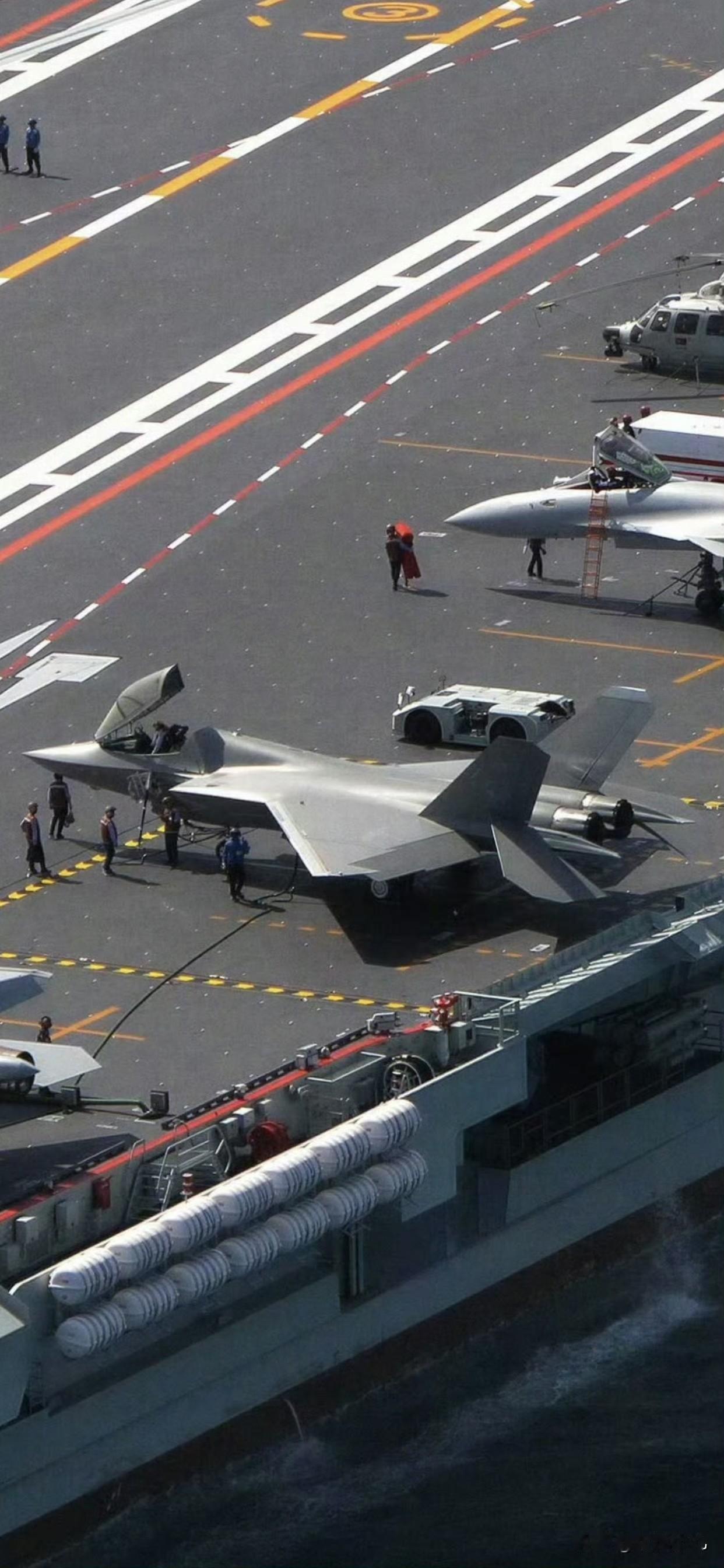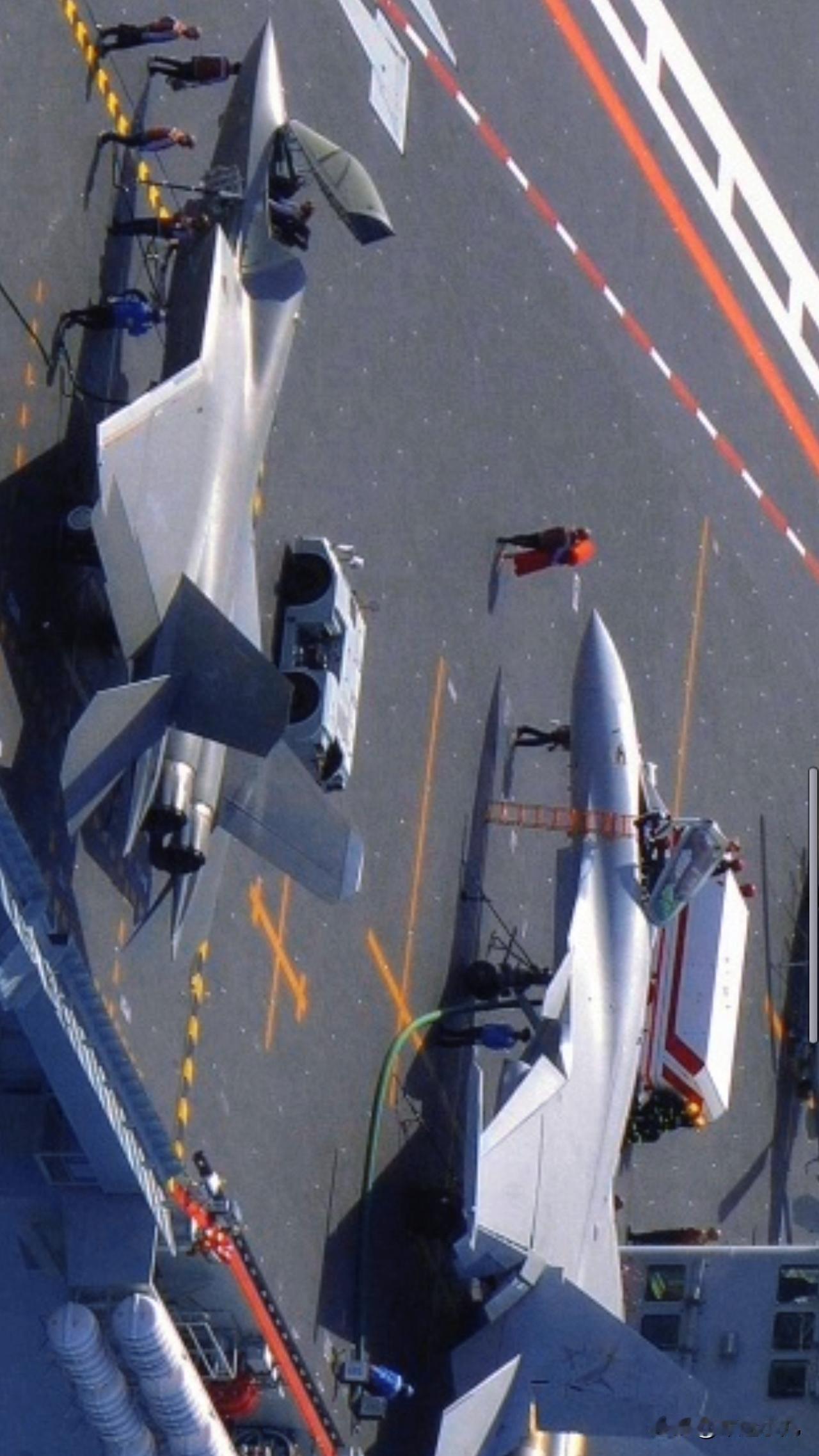 福建舰最新高清特写,不小心公开了歼35重大信息! 前几日,福建舰最新海上训练画面公开了,各型舰载机均实现了多次的电磁弹射起飞,各种视角高清照片也陆续放出来了,其中一张,歼35和歼15T在一起停放着,正在进行检查保养作业,歼35确实看着更加先进和科幻,最主要的是,歼35自带了伸缩登机梯,直接从机身左侧伸出,就可以直接登上歼35的座舱了,反观旁边的歼15T,用的还是外置登机梯,需要机务人员挂载后才能使用! 但是,各有各的好,歼35的伸缩登机梯,使用上,可能要习惯一下,而且两边并没有扶手,用起来还是怪怪的感觉,歼15T这常规登机梯更宽大,用起来更随心应手! 大家觉得呢?评论区说说你的看法!歼-35战机 歼35