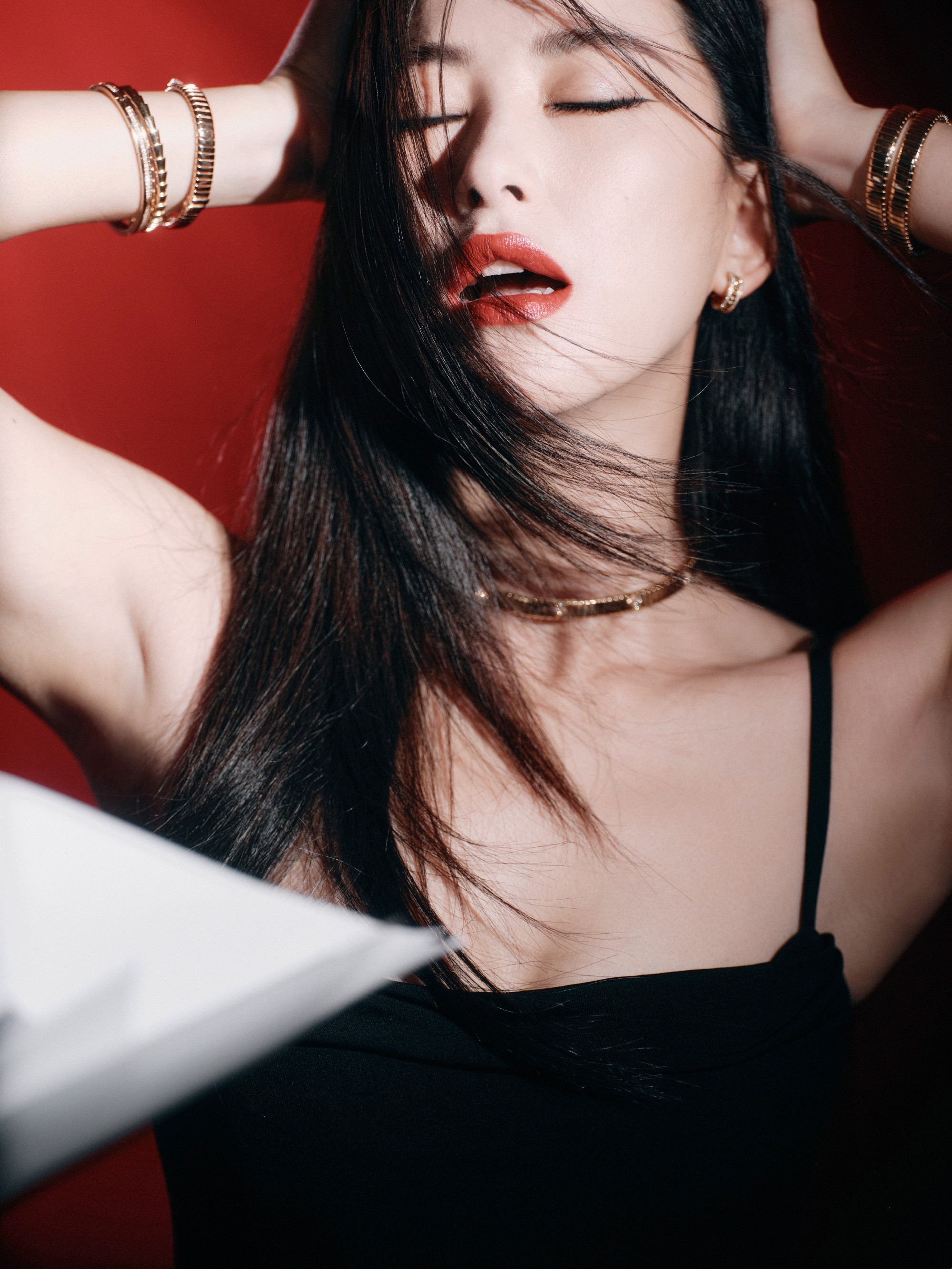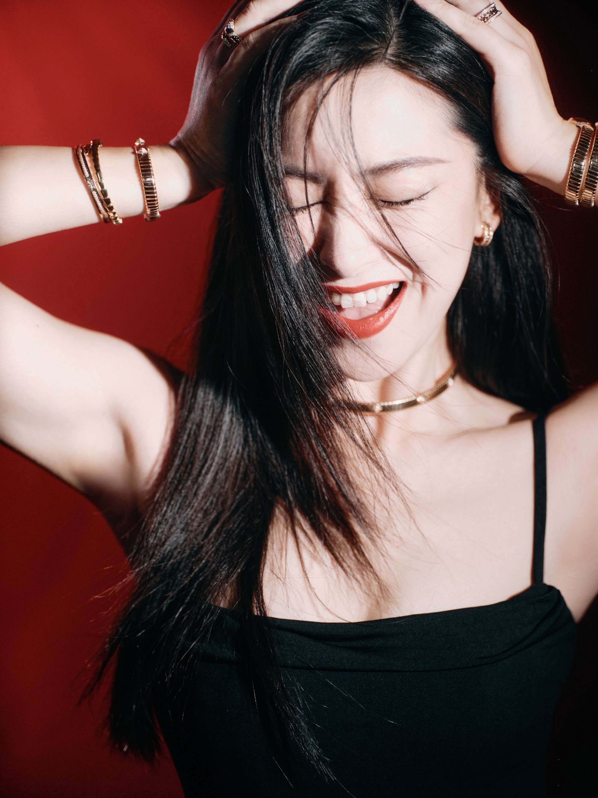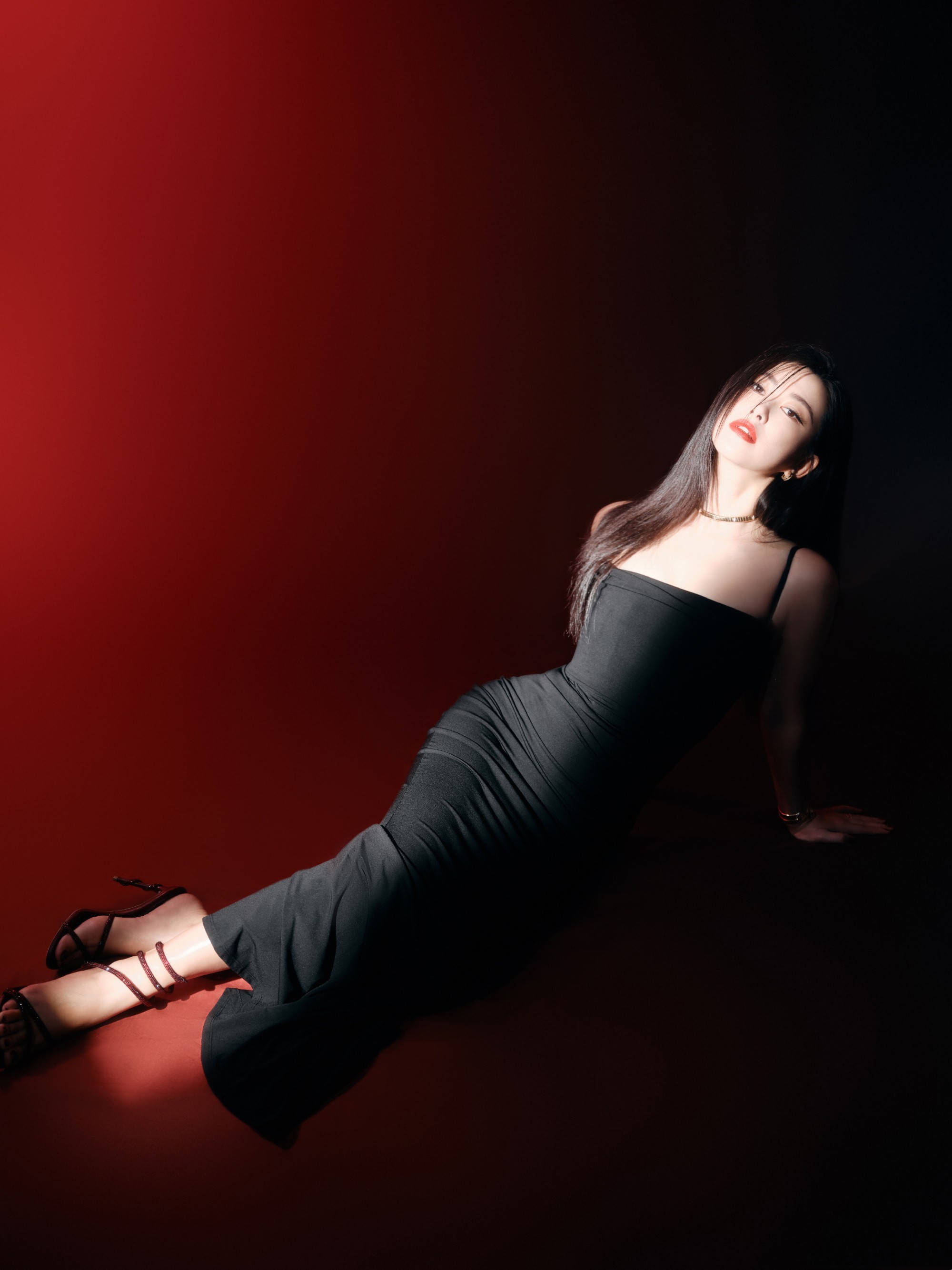 朱珠,红唇黑裙,松弛利落,微醺的优雅