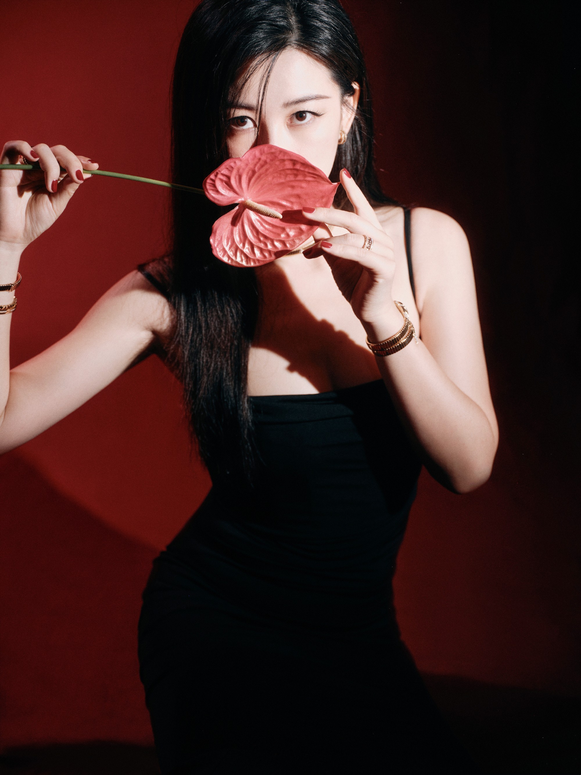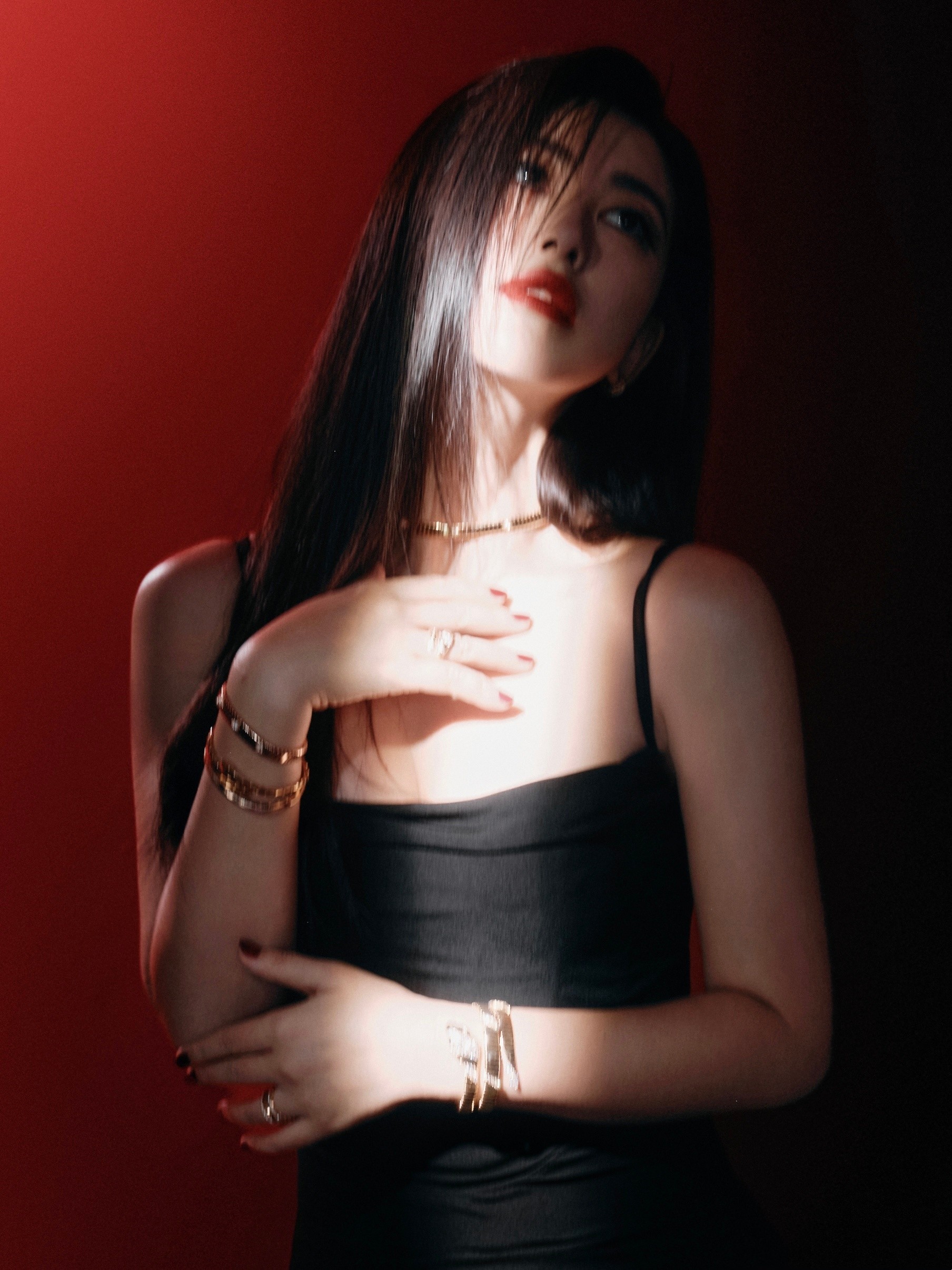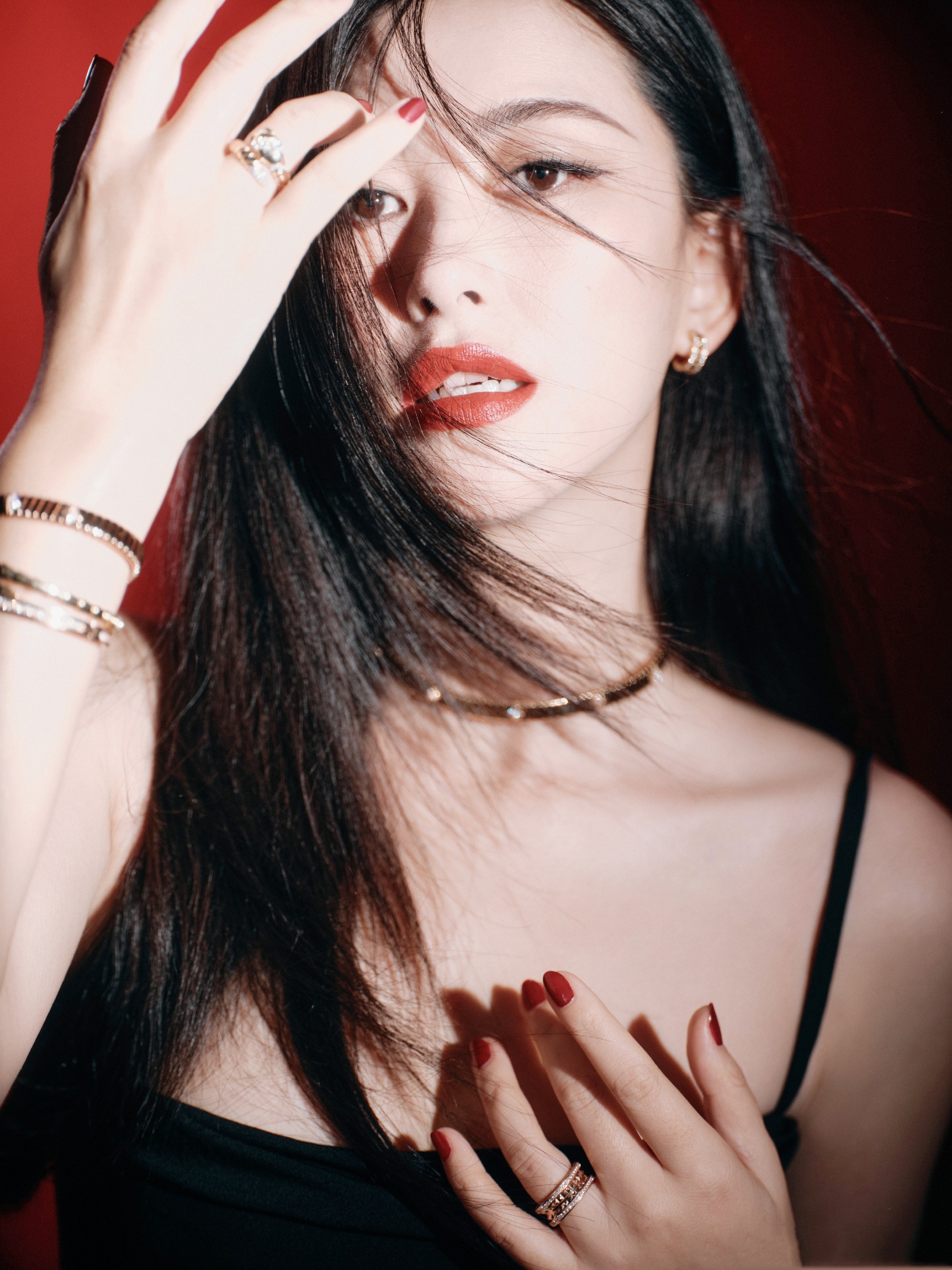朱珠,红唇黑裙,松弛利落,微醺的优雅