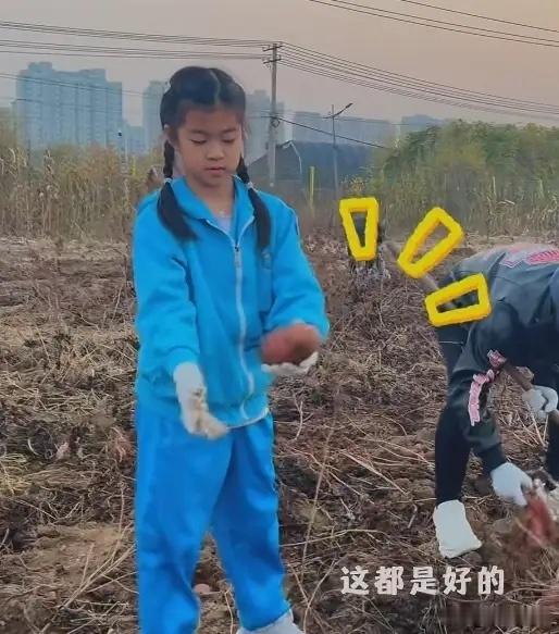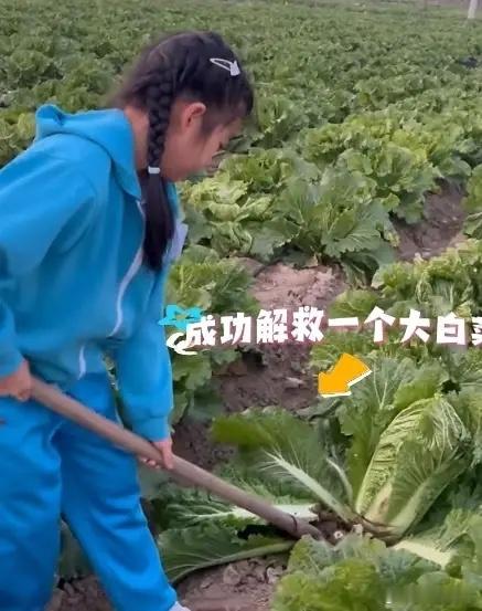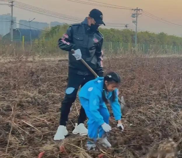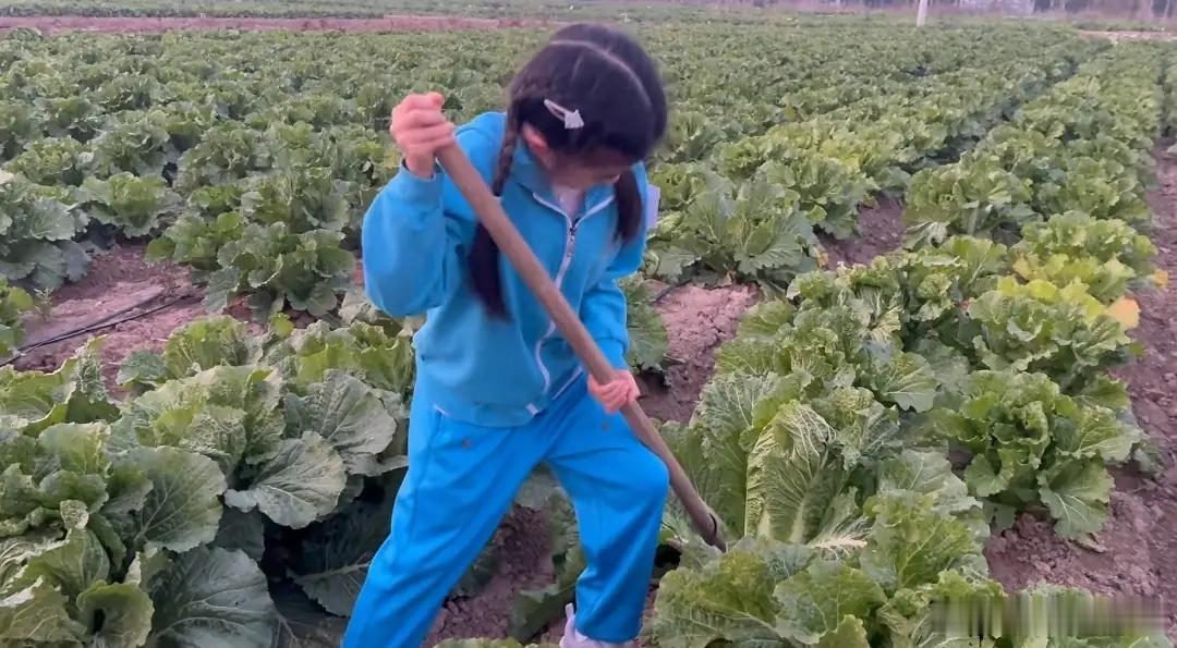 汪峰带9岁女儿挖地瓜,醒醒和爸爸抢铁锹,扛着白菜,力气好大!