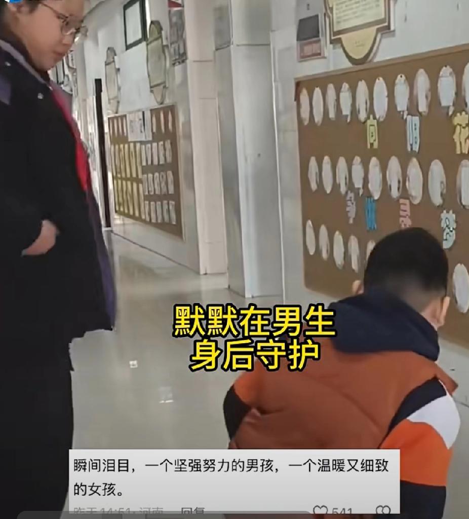 人性的善良在这一刻闪出最耀眼的光辉!山东一女生守在男厕所的门口,只为给残疾的男同学撑一下门! 她不顾同学们的嘲笑,每次都守在男厕所的门口等着男生出来。而男生手撑着两个小板凳出来的那一刻,女生的周身似乎闪闪发光! 男孩很幸运,即便身体残疾也被父母养得白白胖胖,他的眼神坚毅,充满自信,一步一步向前。而女同学细致温柔,默默跟在他的身后,只为在他有困难时伸手扶上一把。 父母、老师和同学们都把他当成一个正常人来看待,让他去正常学校读书。他所走的每一条路,都有爱他的亲人、朋友、同学和老师。 大胆向前走吧孩子,你的身后,有我们为你守护!善良 人性 山东身边事