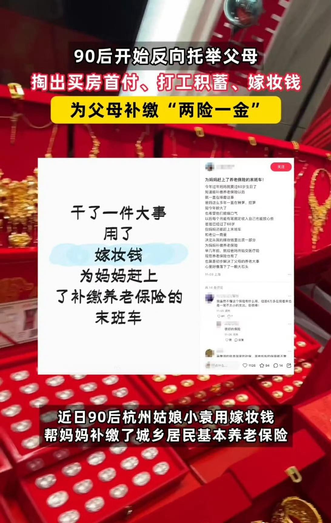 从"啃老"到"养老",90后正在完成人生角色的重要转变。看着父母满头白发的样子,也是时候为他们做点什么了。 杭州90后女孩用嫁妆为妈妈补缴社保