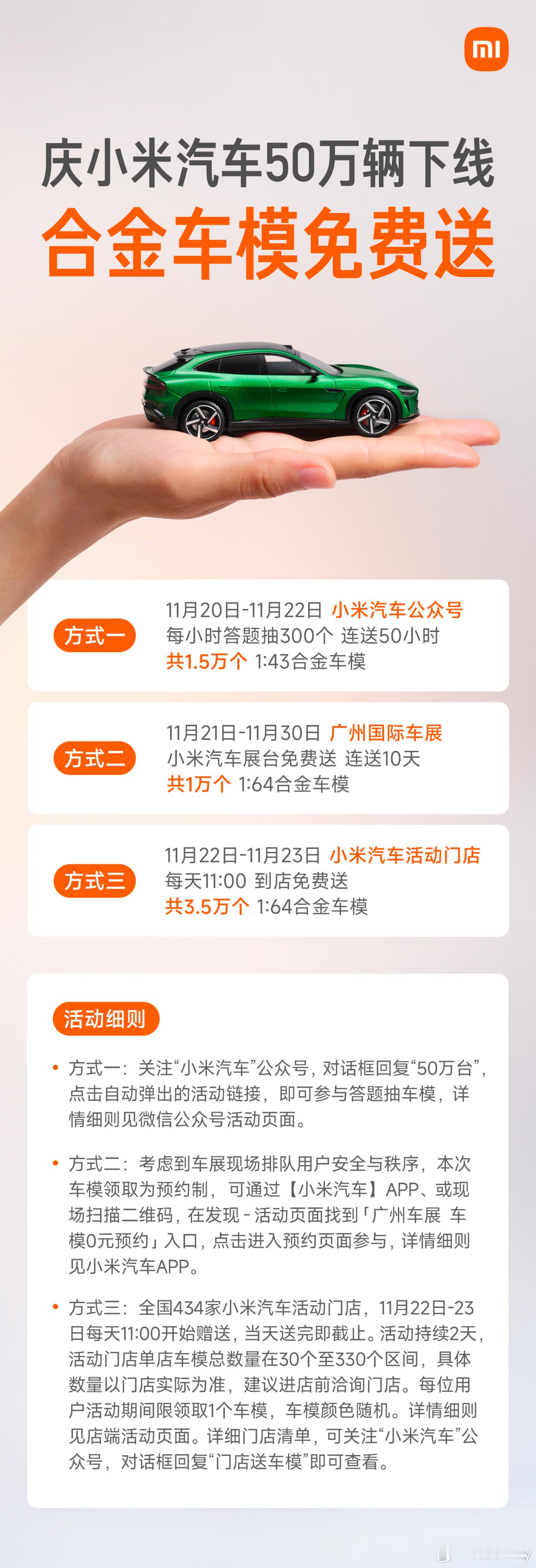 50万整车下线送车模了!小米这波操作透露两个信号:第一产能真的稳了第二6万车模免费送从0到50万只用20个月,速度比特斯拉还猛!雷军这是在说:电动车圈该换王炸了
