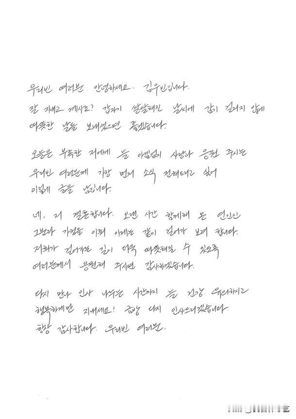 20日,演员金宇彬在其粉丝俱乐部发布了一封亲笔信,宣布了这一消息。 金宇彬在信中写道:“一直以来,尽管我有很多缺点,但始终给予我爱和支持的宇彬(粉丝名)们,我想第一个告诉你们这个好消息,所以我写下了这封信。是的,我要结婚了。我将与陪伴我多年的人组建家庭,携手共度余生。” 金宇彬补充道:“请大家为我们加油,让我们前行的道路充满温暖。”