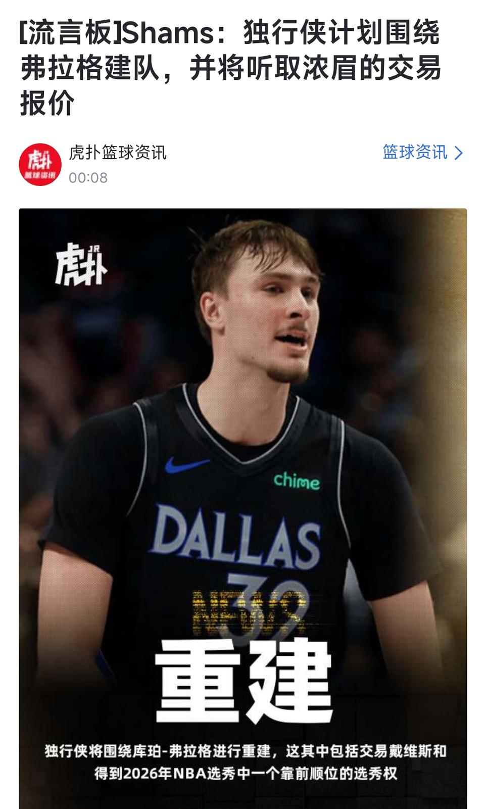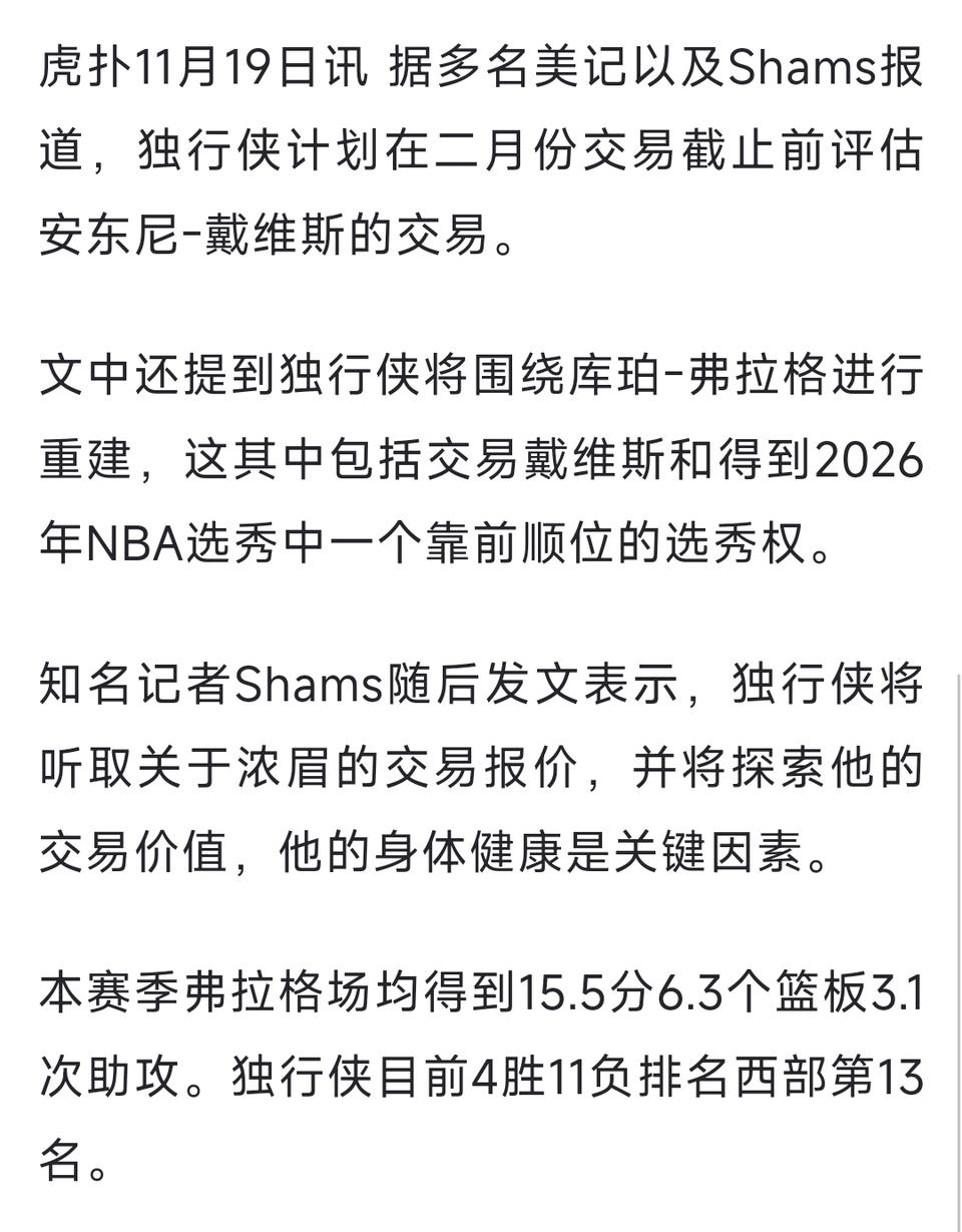 独行侠要重建了,交易浓眉哥,以弗拉格为核心。 那么欧文该怎么办?也是老将级别了。 主要欧文和汤普森都有伤,也打不了。 这个球队好乱呀,过几年不会再把弗拉格送给湖人吧??[笑哭]