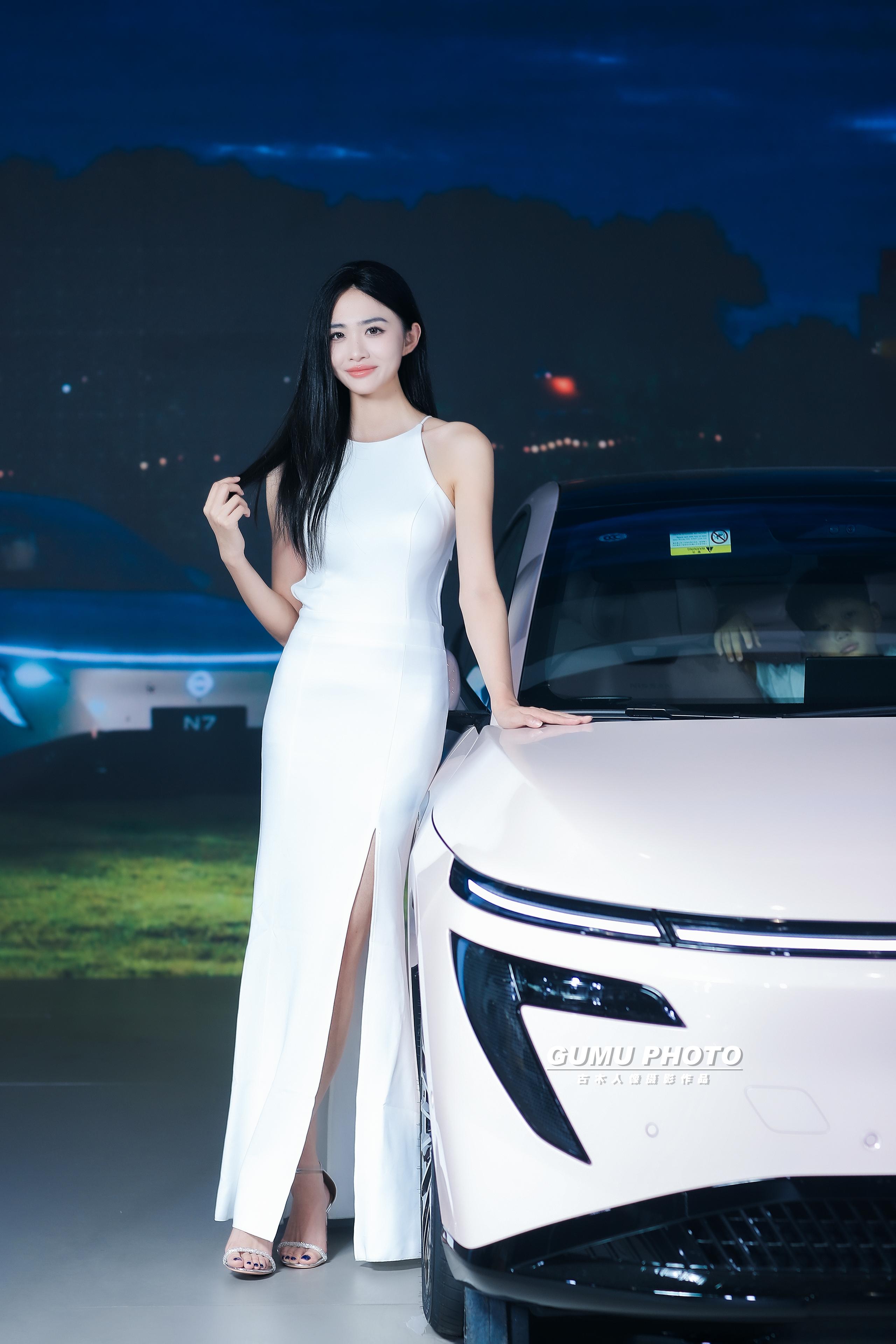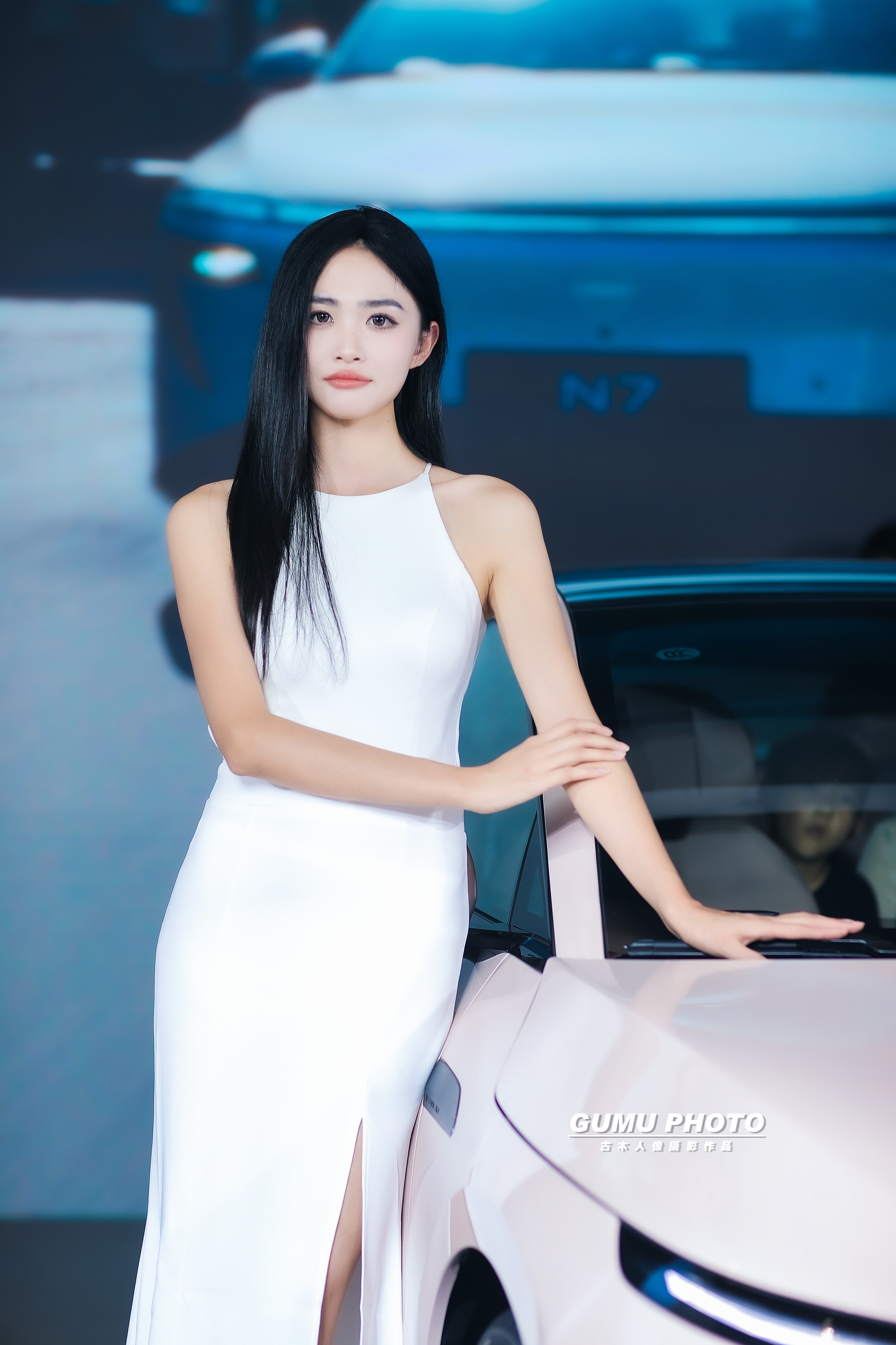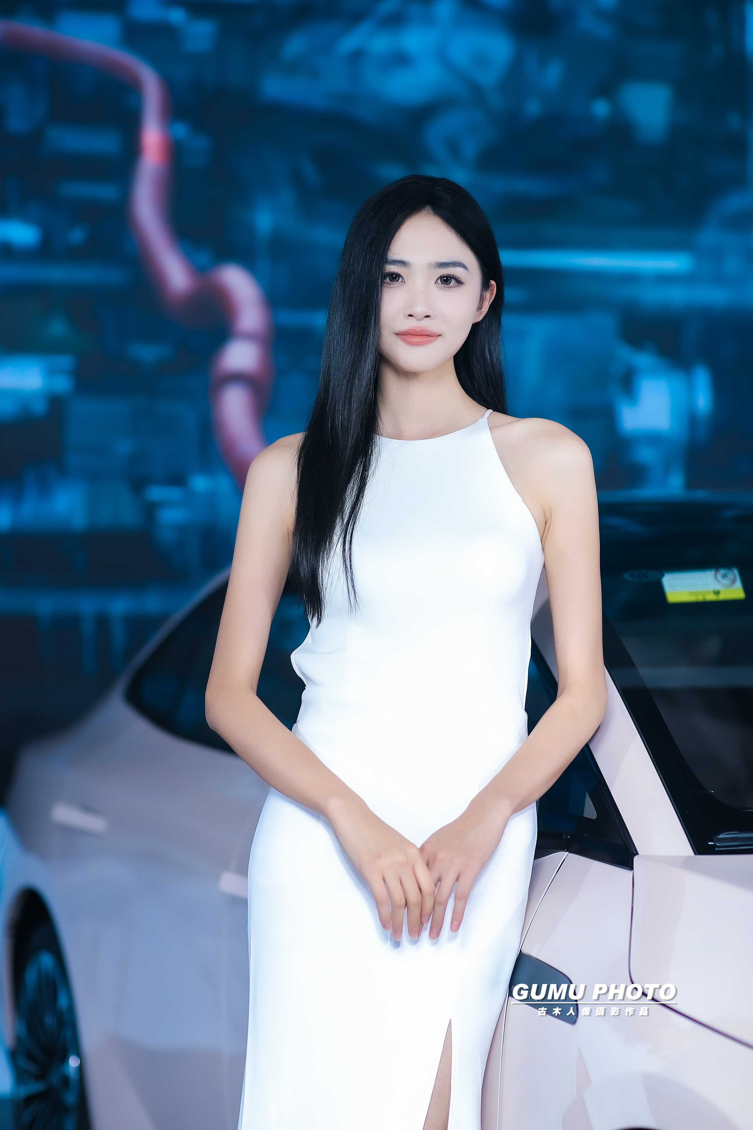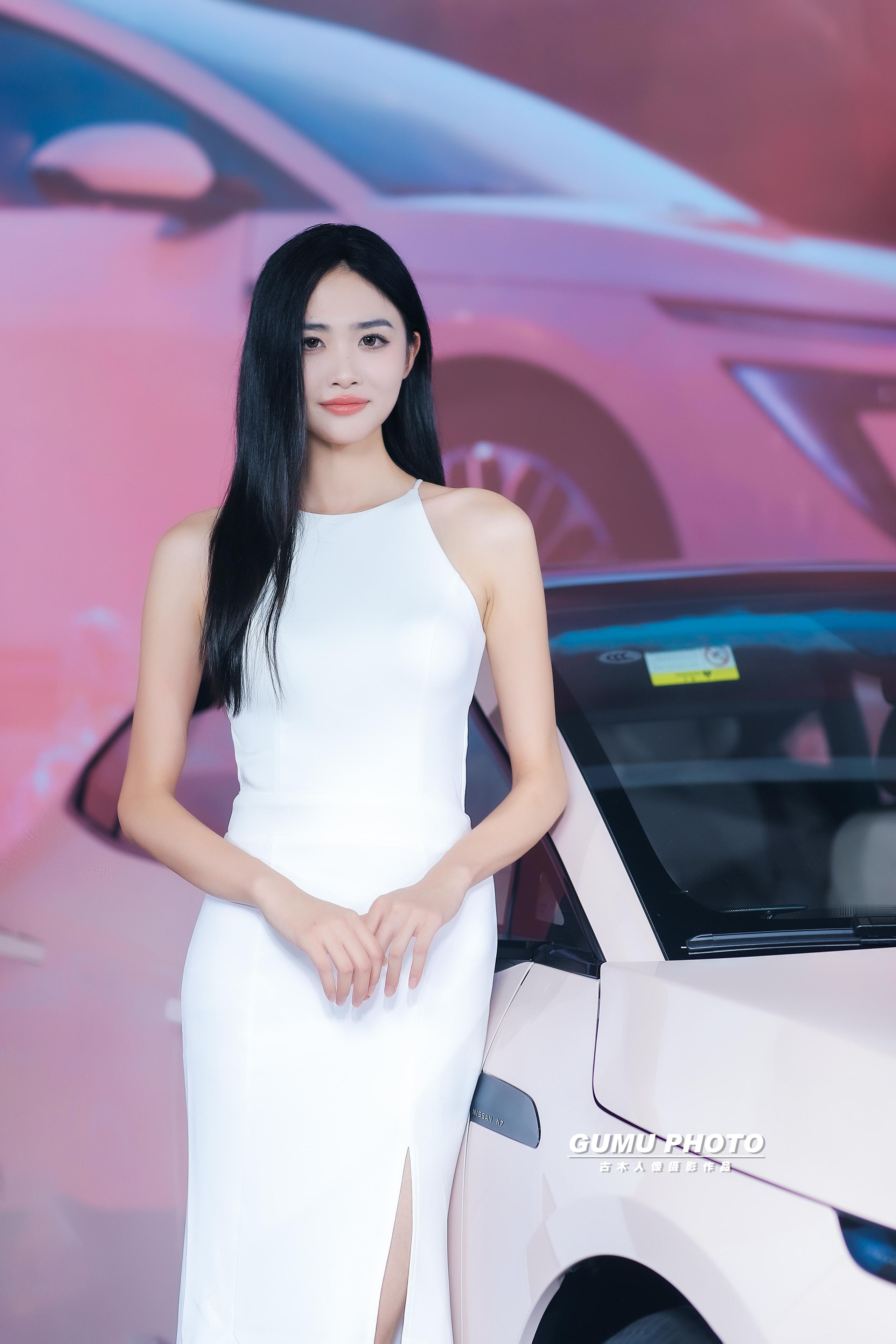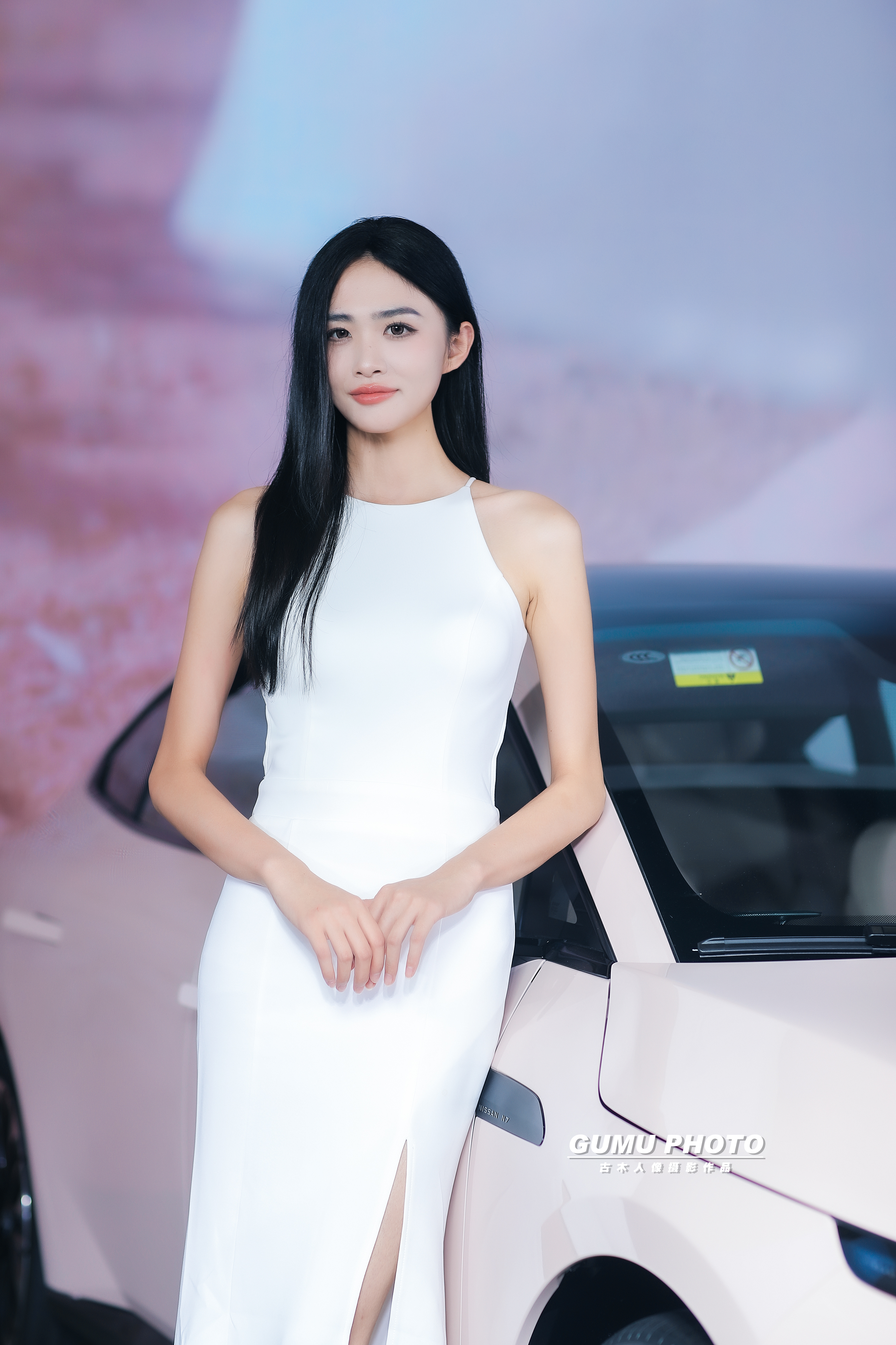 花开花落,车来车往。甜美少女在车展上自拍,车模风穿搭,超可爱!💖🚗