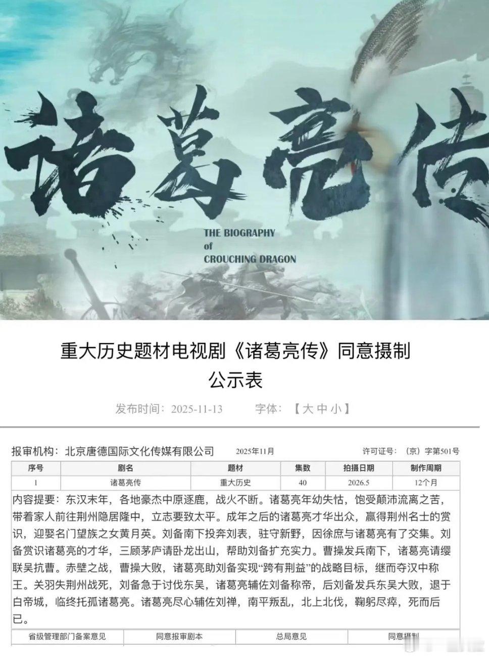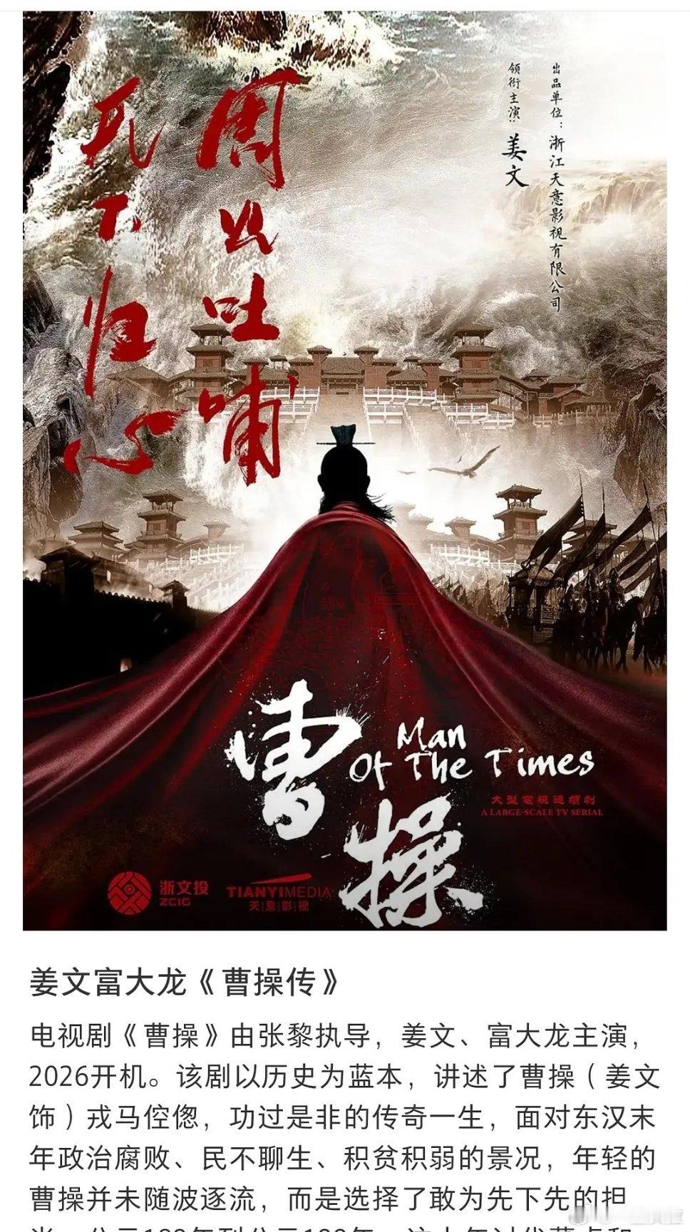 张居正传,诸葛亮传,曹操传都备案了,全都是巨男主,演不好等着被历史粉骂亖吧。。