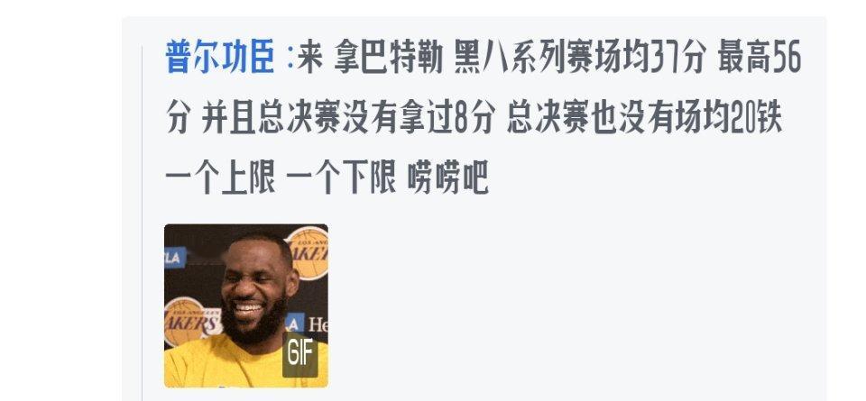 现在为了黑詹姆斯,连巴特勒都能当枪了?巴特勒总决赛没有8分,但你季后赛6分8分可有的是啊!恐怖的是你6分8分还能赢!巴特勒56分?黑八系列赛场均37分,你也是真能挑啊。巴特勒整个职业生涯至今季后赛一共打了24个系列赛,就2个30+系列赛,就让你选中1个。而且56分还是个首轮。不知道以为总决赛呢。30+巴特勒127场才24次詹姆斯55个系列赛18个30+系列赛。我觉得你可以用小学数学算下。詹姆斯30+在09年结束就30次了。