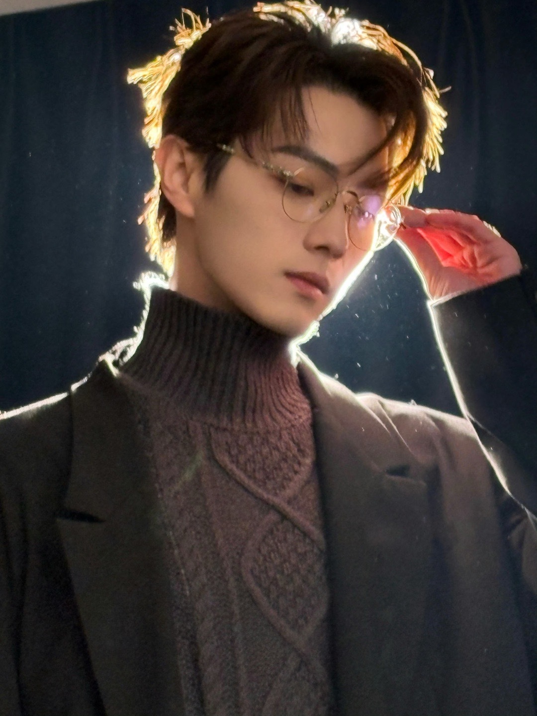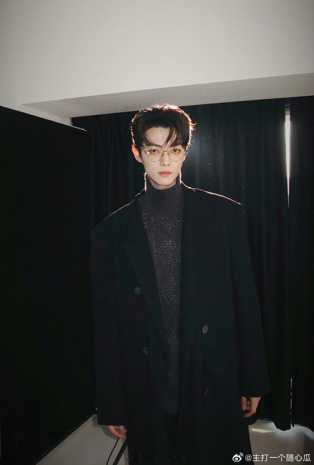许凯营业,金丝眼镜+高领毛衣长外套,高干霸总即视感,太帅啦!