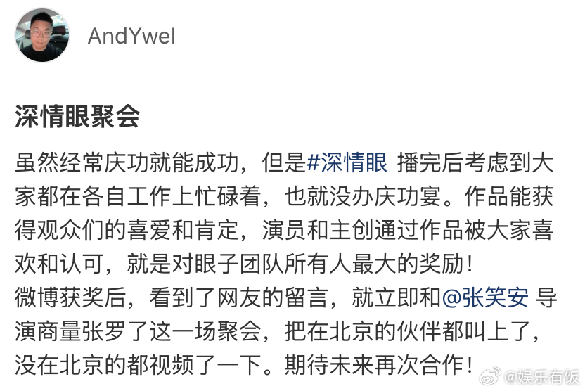 看到《深情眼》制片人发的聚会合照,原来制作方也在看无予伦毕超话一整个被甜到!