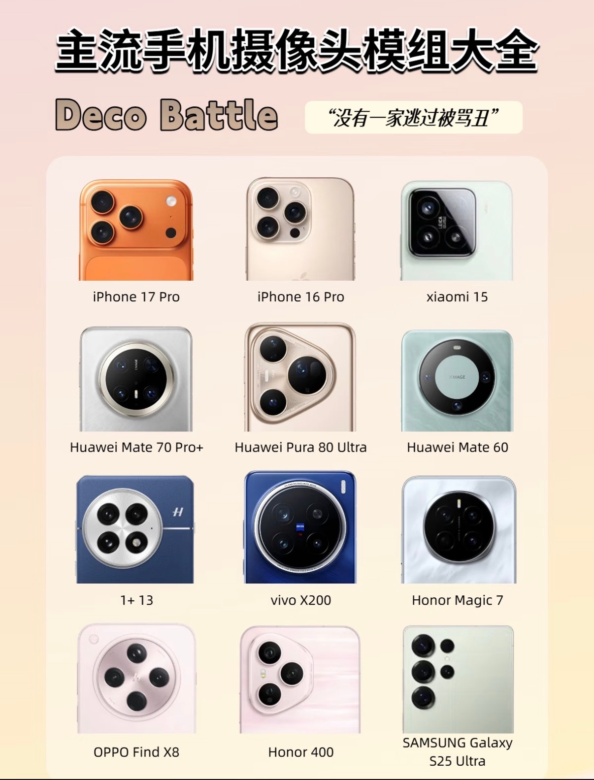 镜头deco千千万,出来的时候都说丑,看惯了其实都差不多目前我最喜欢iPhone Air的镜头设计,虽然独眼在功能性上差了点,但极简美学还是永不过时的