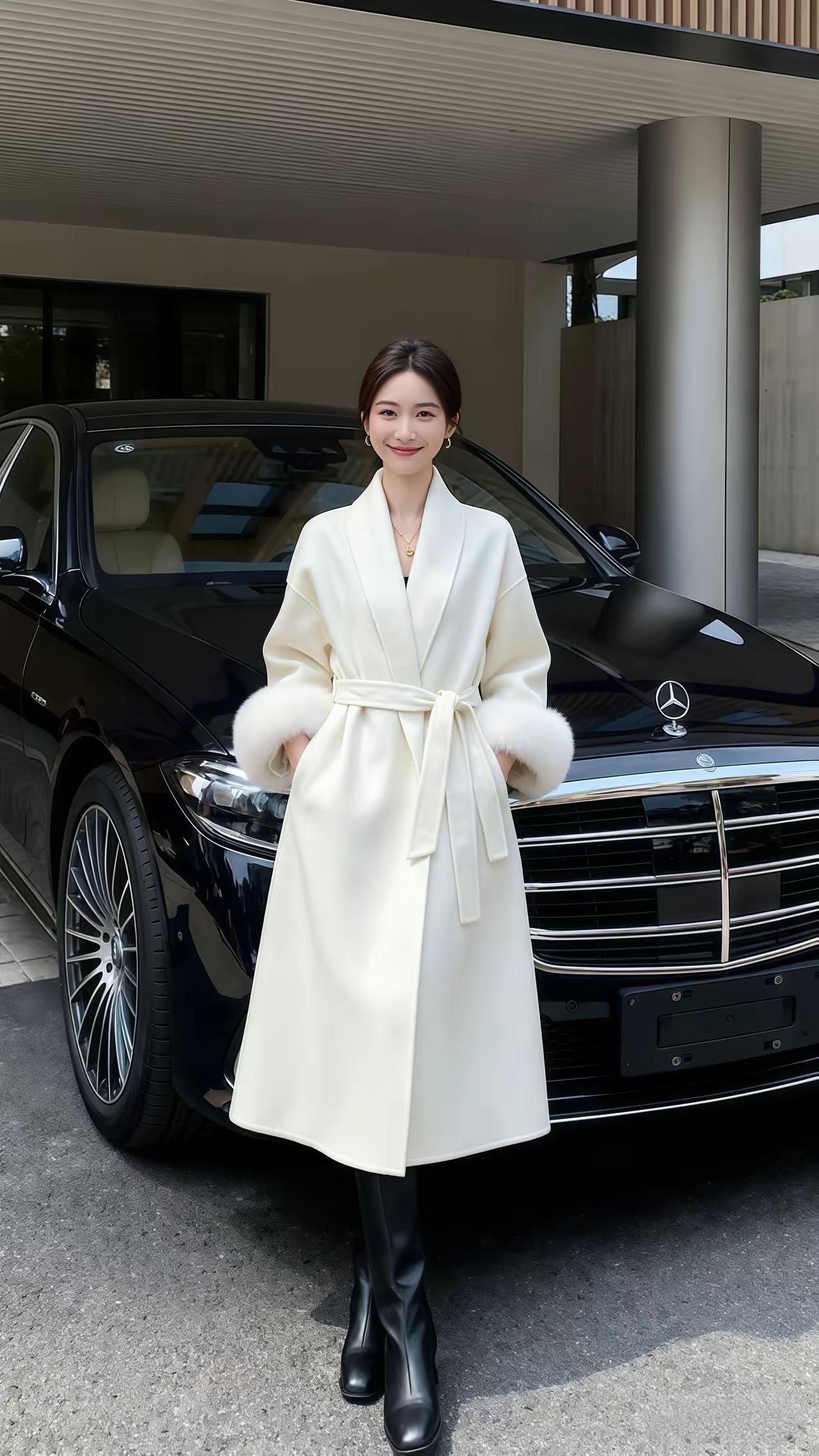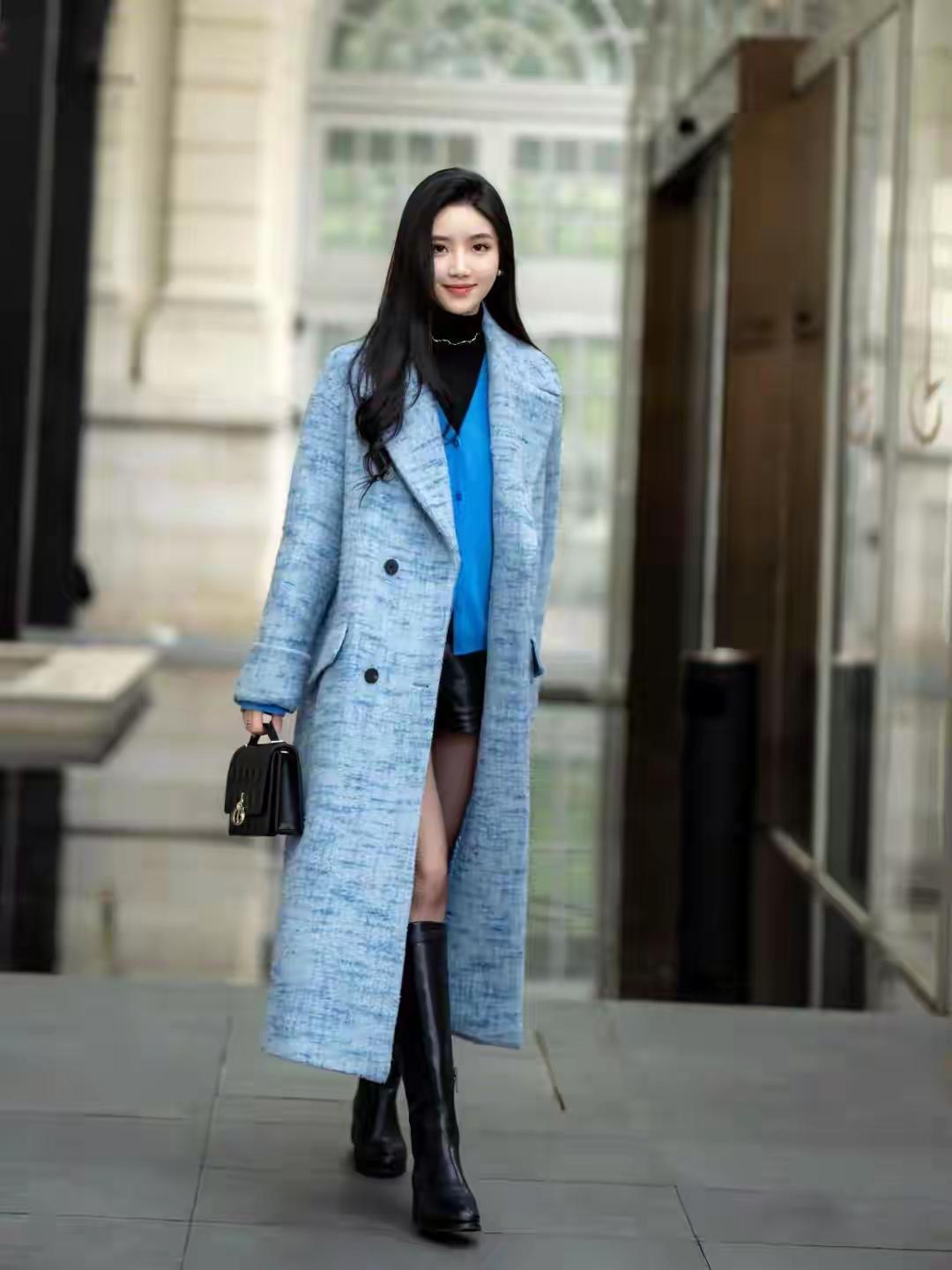 这套白色叠穿太戳审美!长款风衣+短款西装裙,利落短发配黑包高跟鞋,气场与优雅都拿