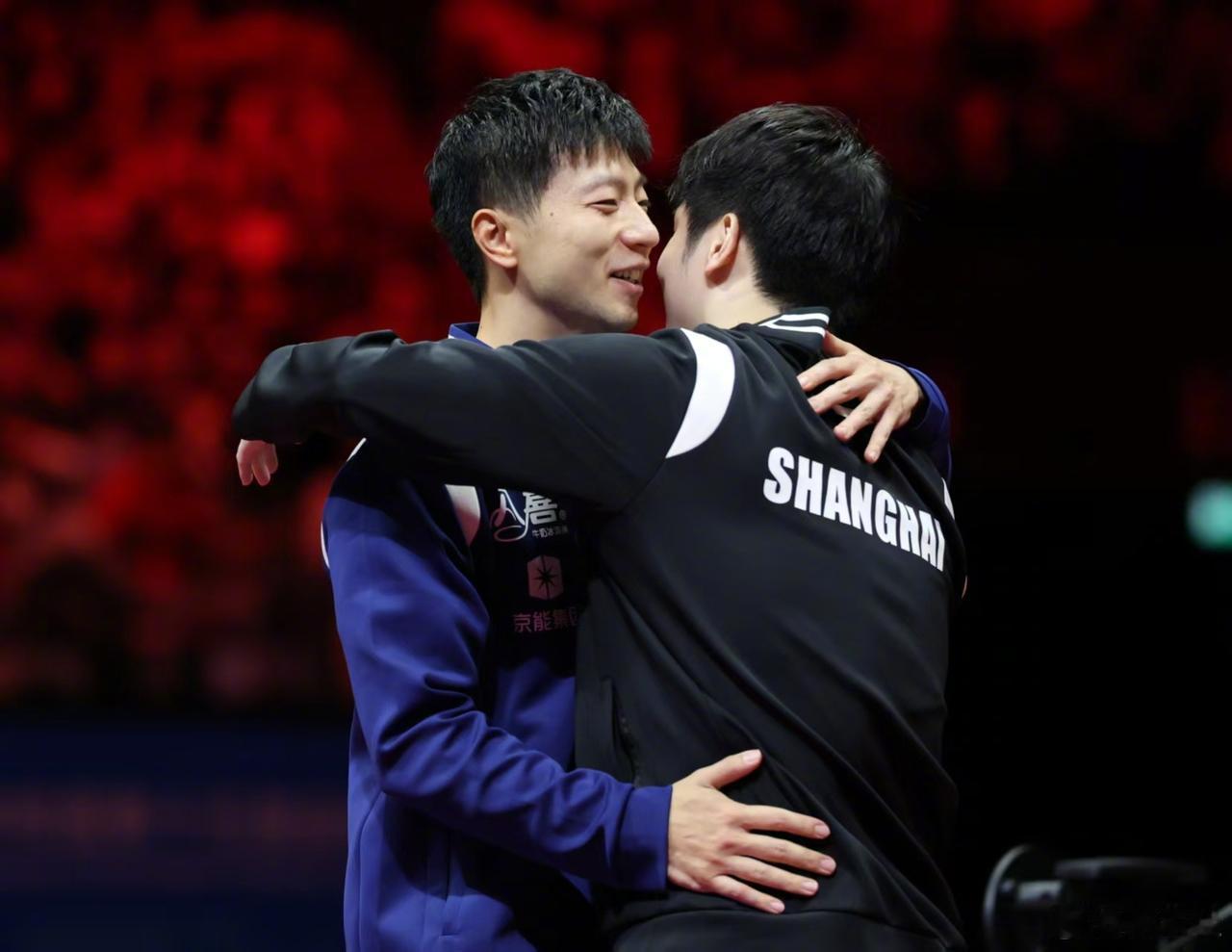 乒乓球男团体赛后,马龙和樊振东深情拥抱,这不仅是属于老将间的惺惺相惜,也是老将托举小将前行。 在全运会乒乓球男团赛后颁奖环节,樊振东与马龙在场上相视一笑,先是击掌致意,随后紧紧拥抱,引来现场观众的热烈掌声。全运会男团决赛当天,马龙还与老对手许昕拥抱致意。 这些拥抱看得人热泪盈眶,那是赛场上沉淀的默契,是输赢之外的真心认可。老将的坚守温暖又有力量,小将的成长鲜活又滚烫,这份双向奔赴的情谊,比奖牌更让人动容,也成了赛场内外最动人的风景。